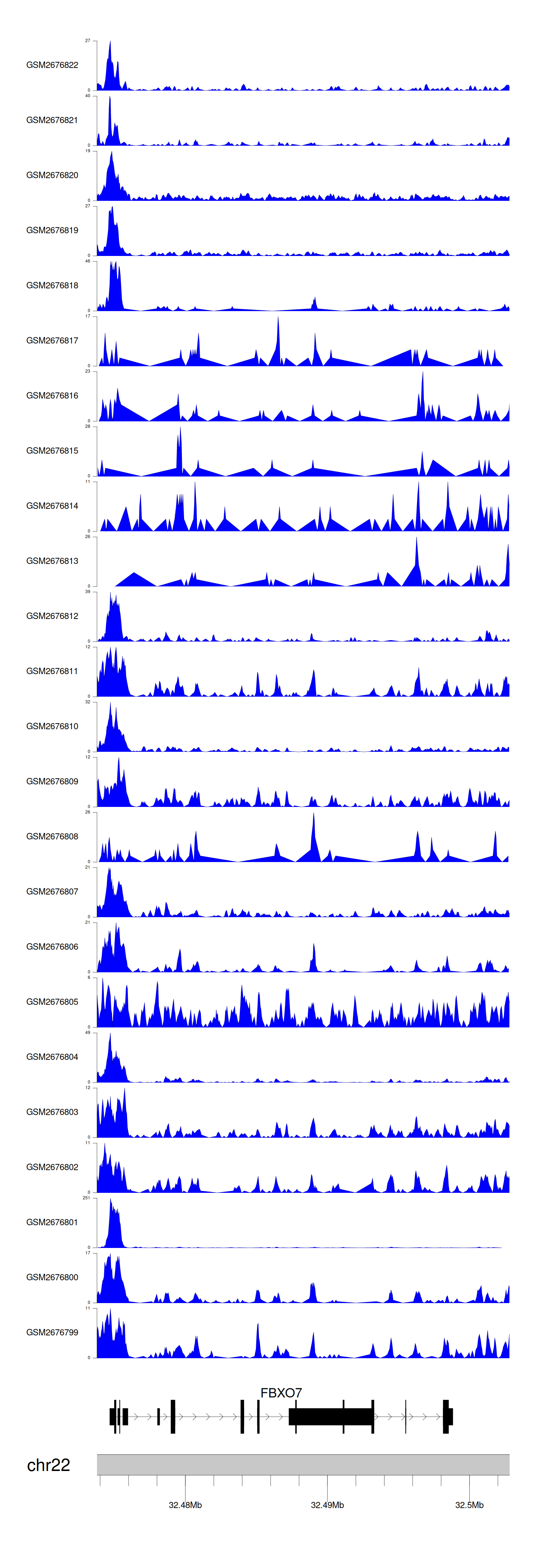 > Dataset: GSE100376 - FBXO7 peak across samples
