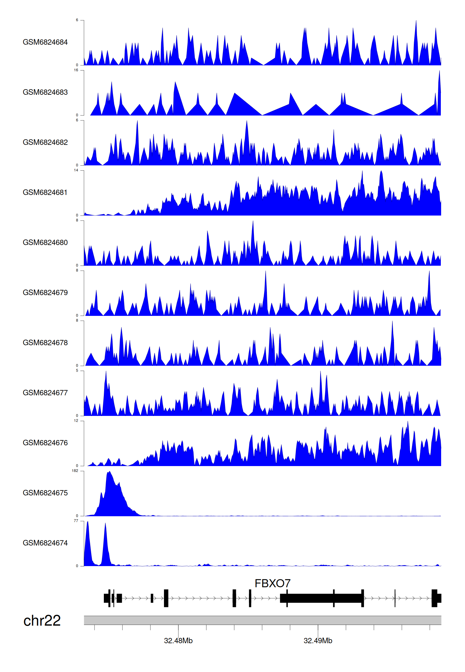 > Dataset: GSE165703 - FBXO7 peak across samples