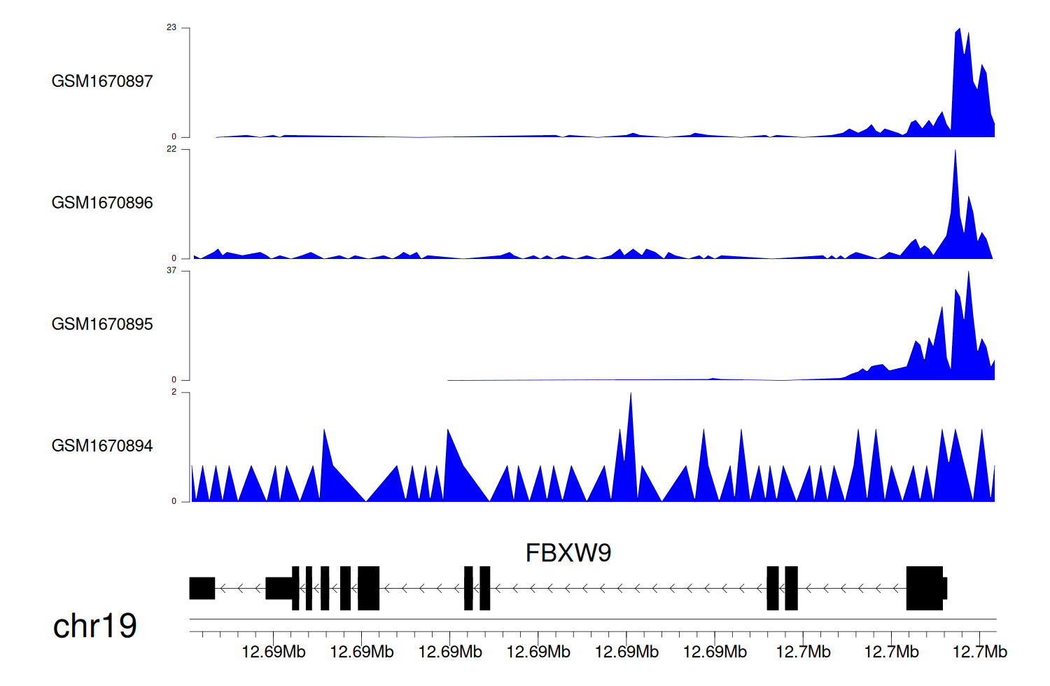 > Dataset: GSE68402 - FBXW9 peak across samples