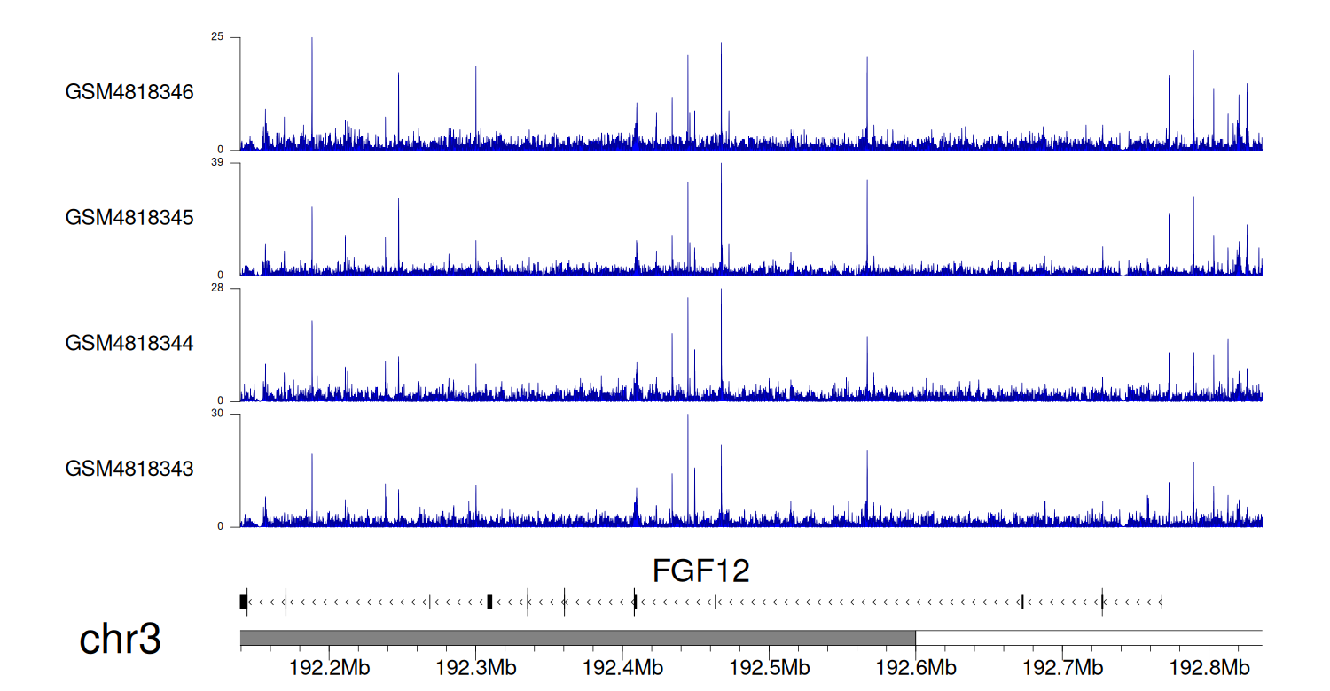 > Dataset: GSE131257 - FGF12 peak across samples