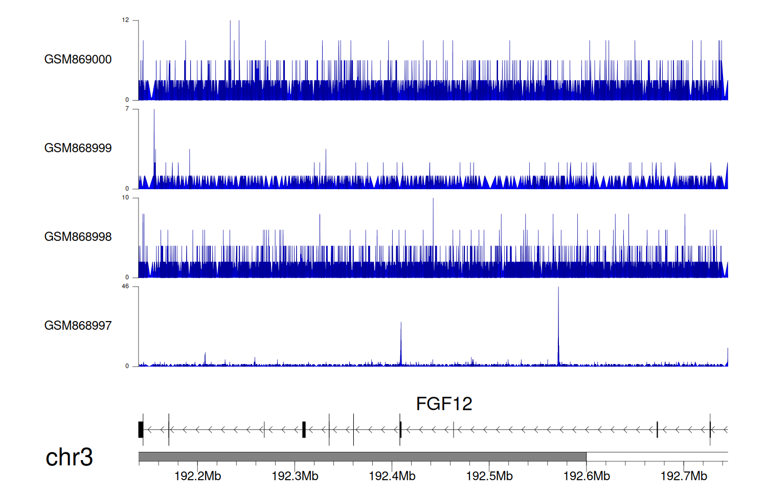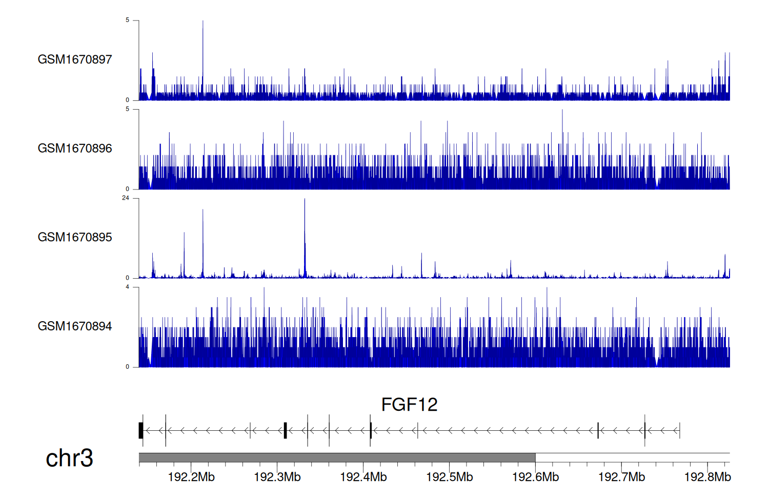> Dataset: GSE68402 - FGF12 peak across samples