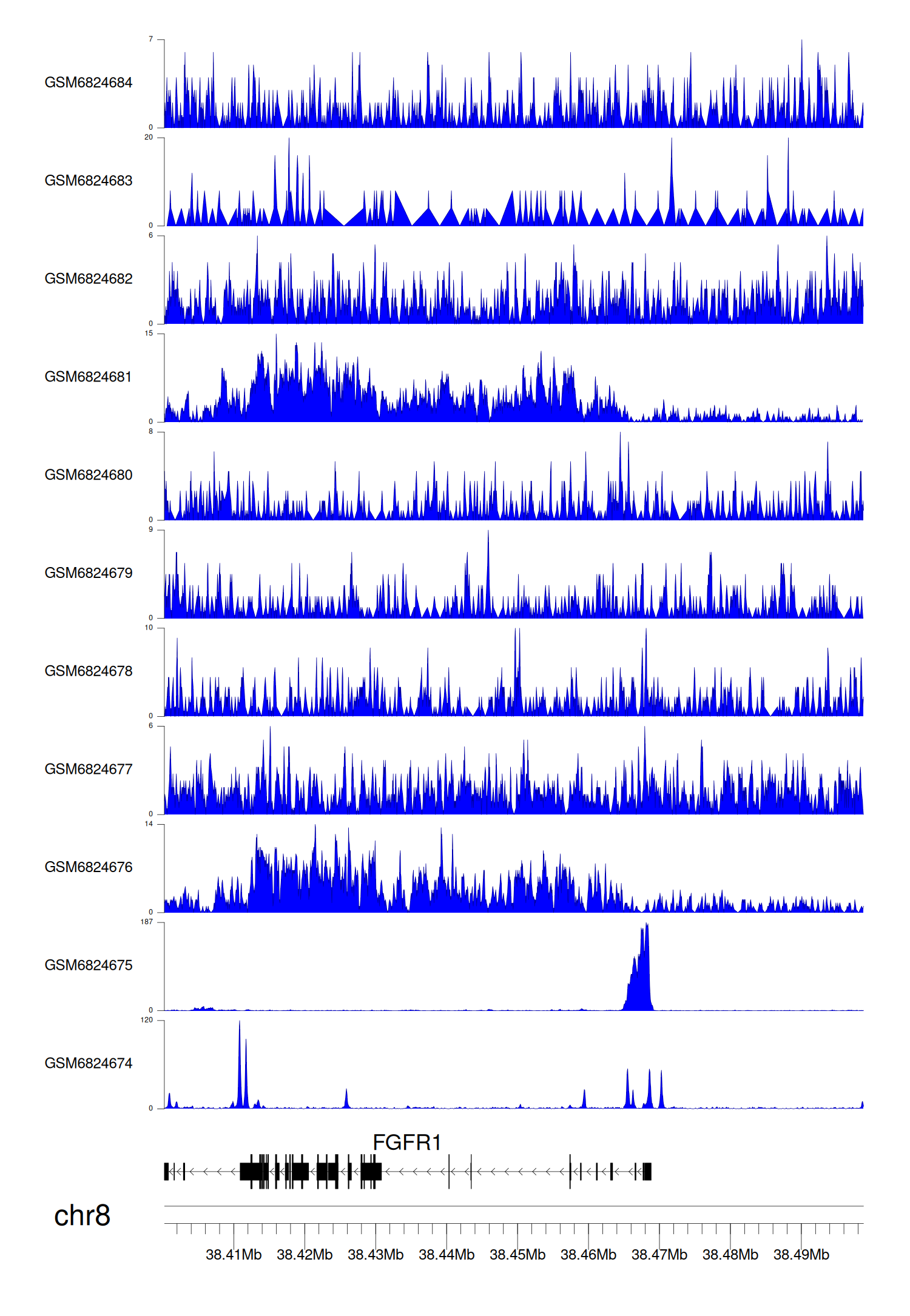 > Dataset: GSE165703 - FGFR1 peak across samples