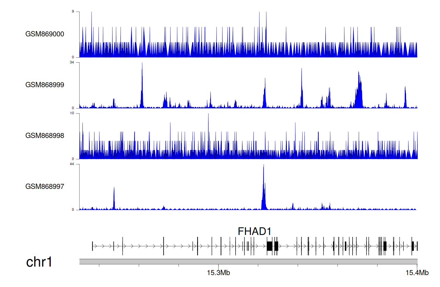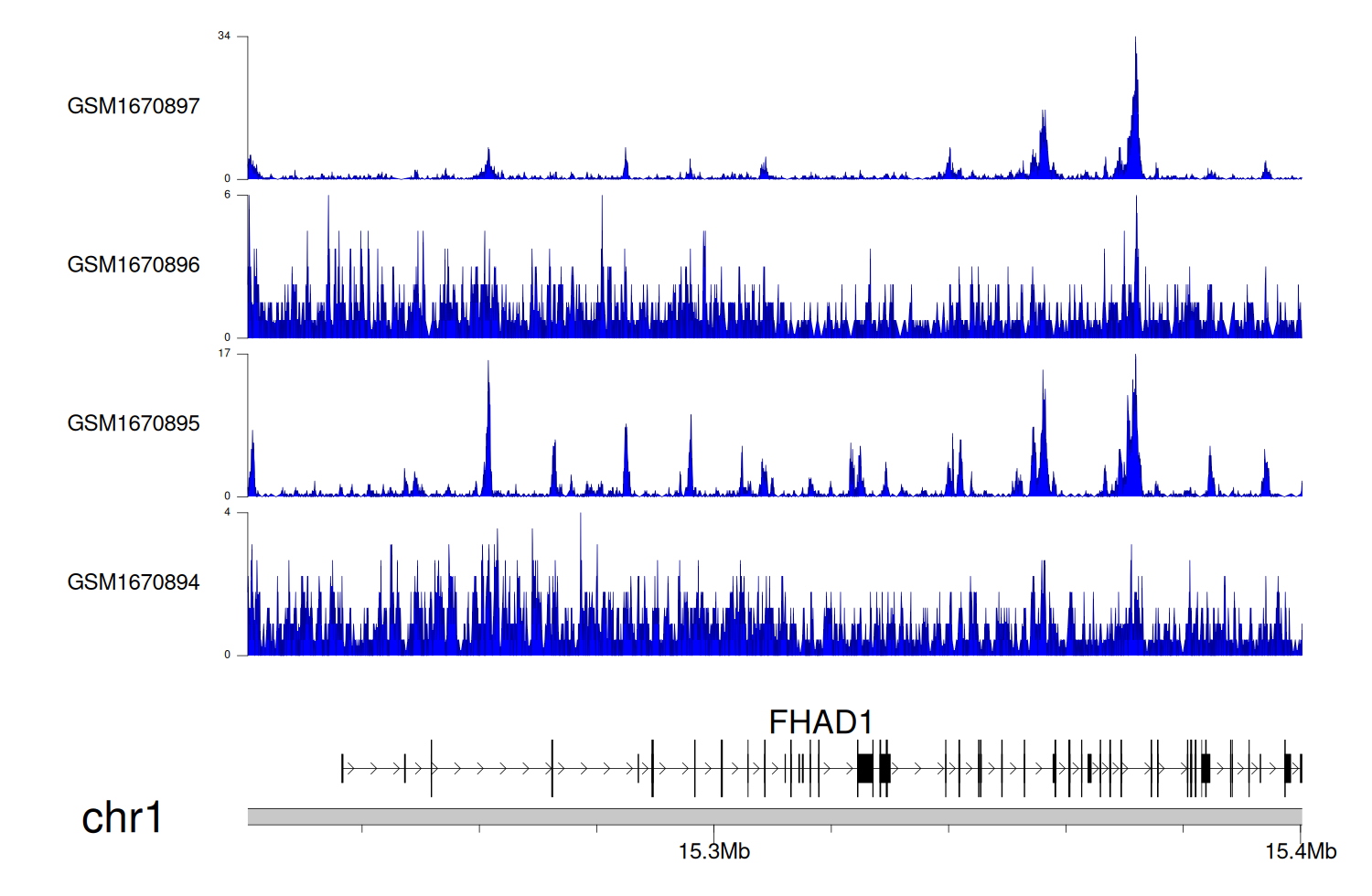 > Dataset: GSE68402 - FHAD1 peak across samples