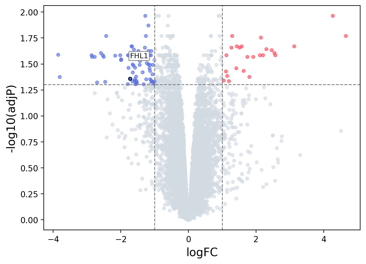 When the query gene is differentially changed in the dataset, a volcano/bar plot will be displayed.
