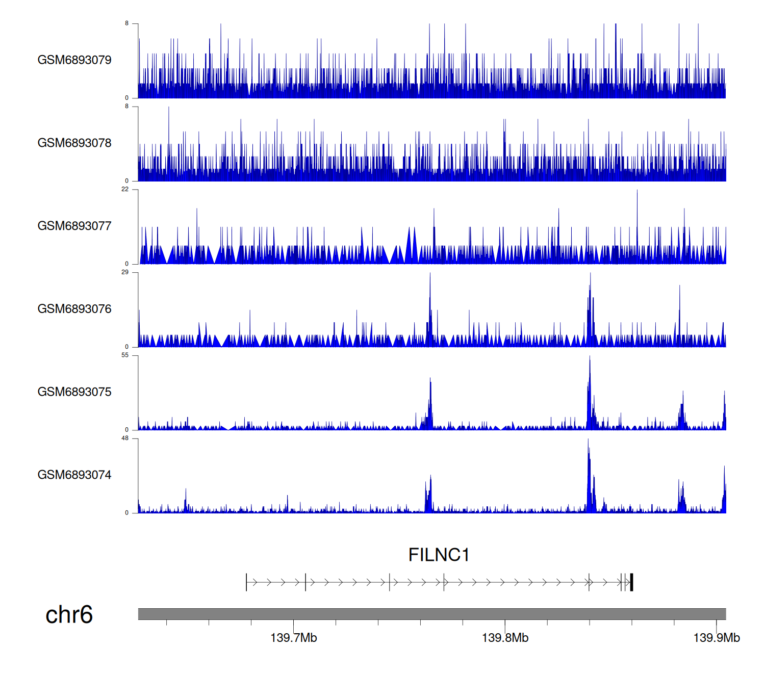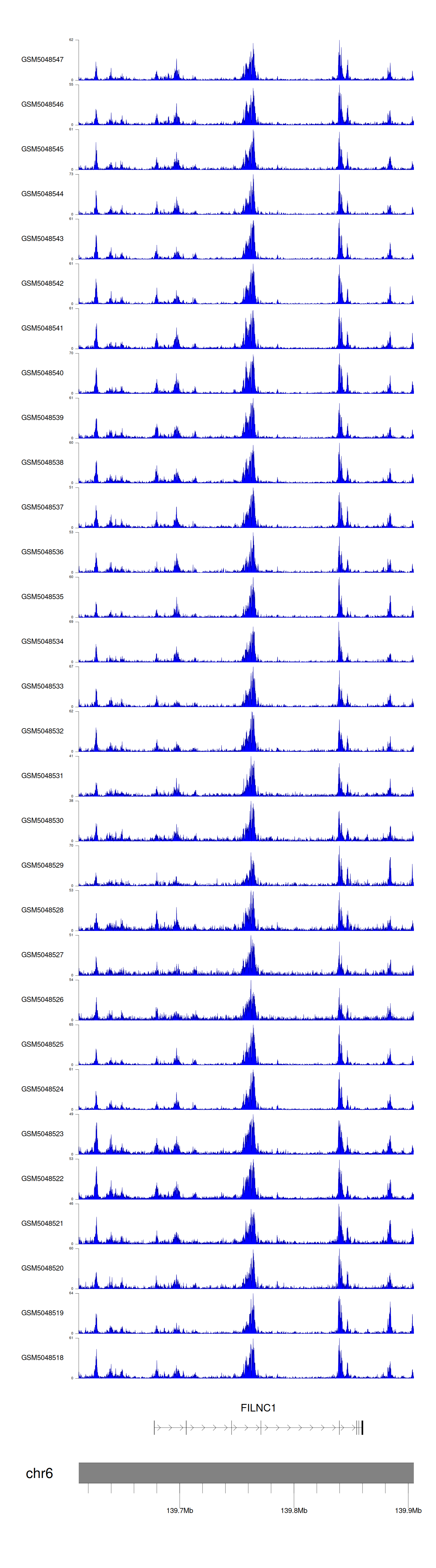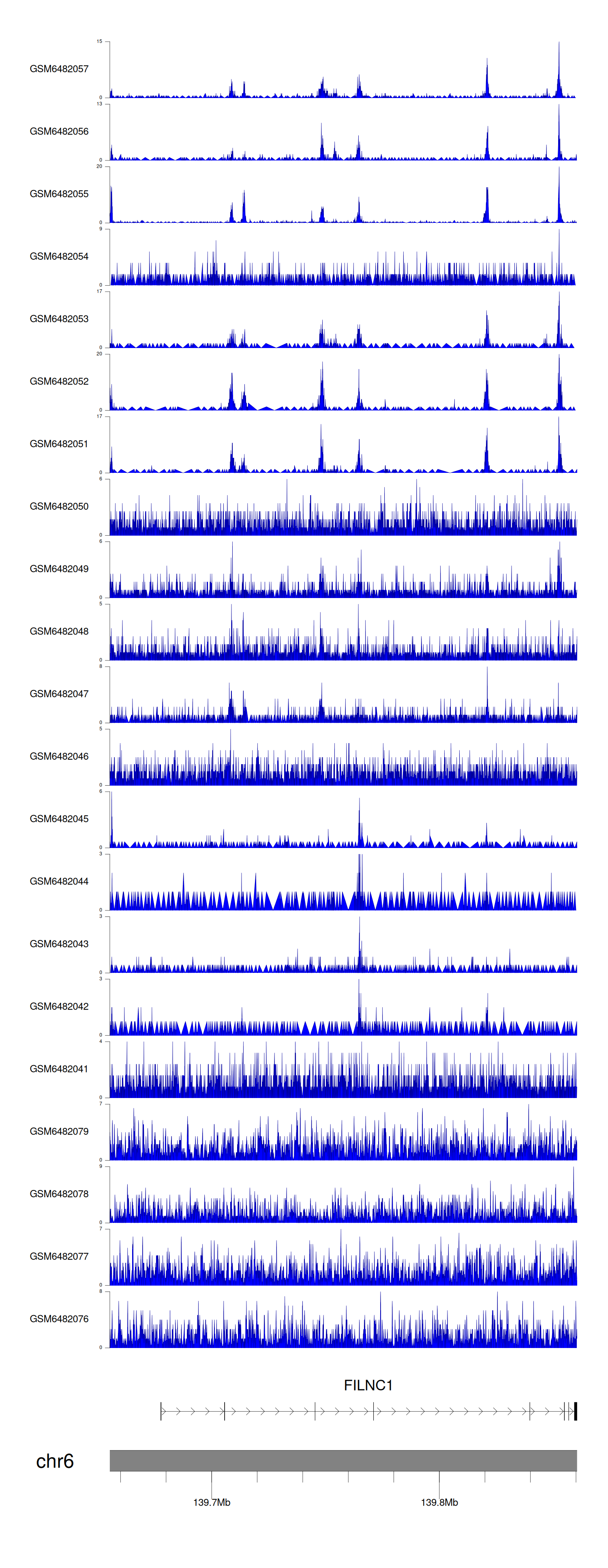 > Dataset: GSE165703 - FILNC1 peak across samples