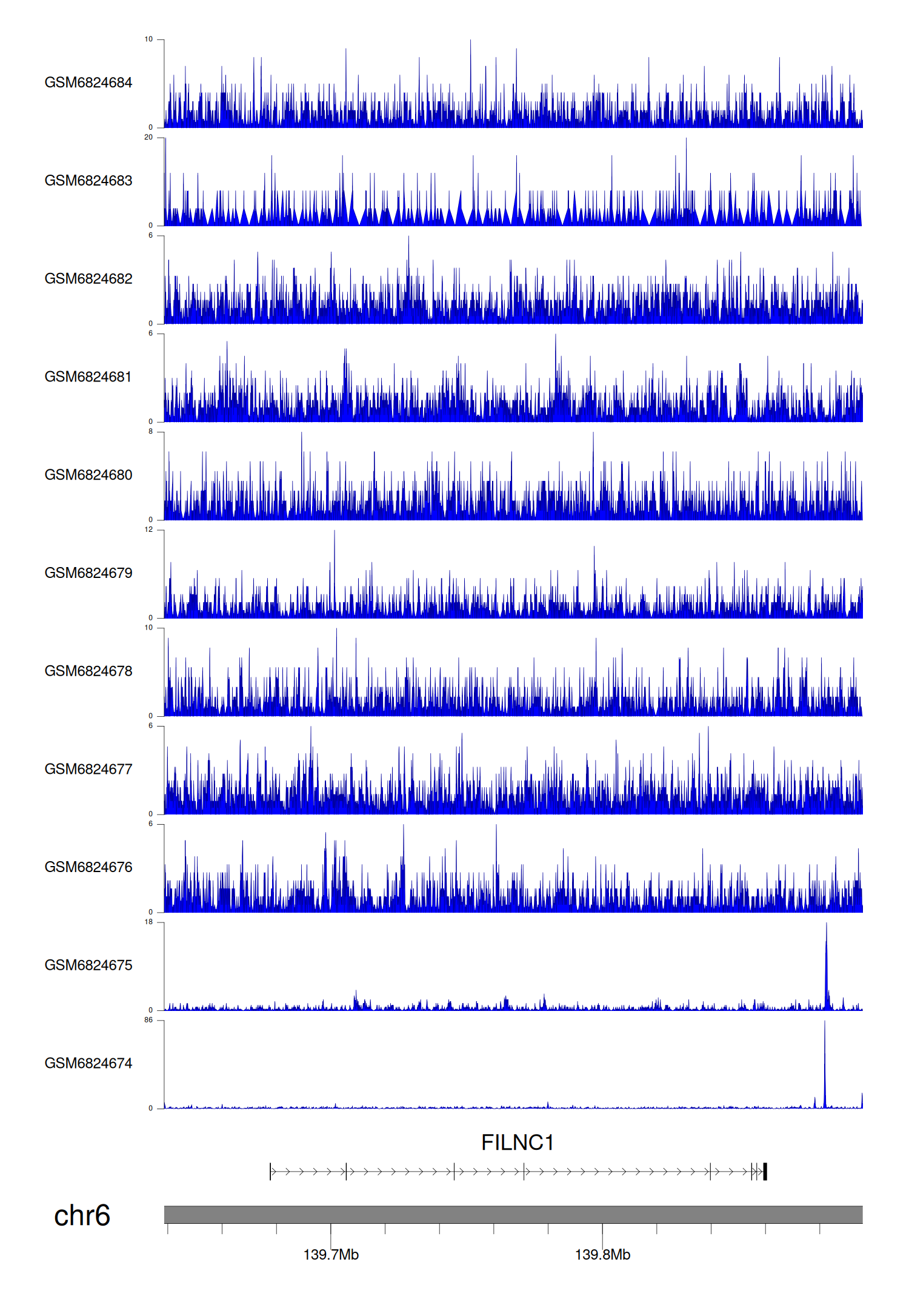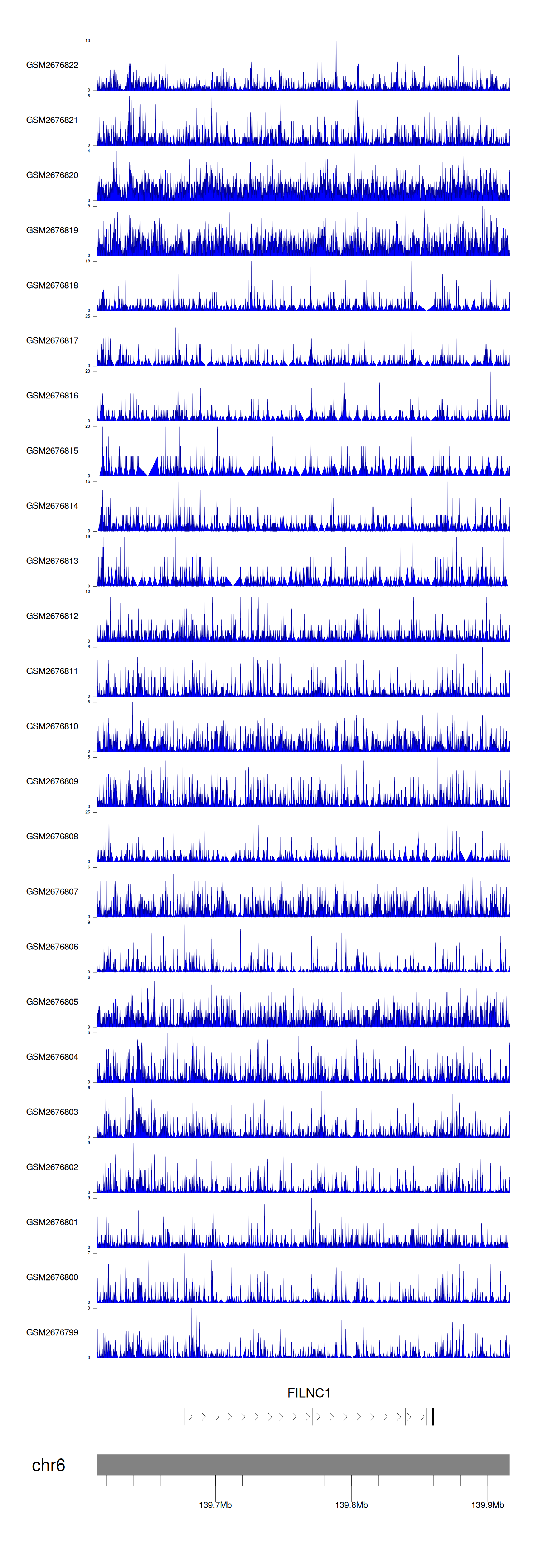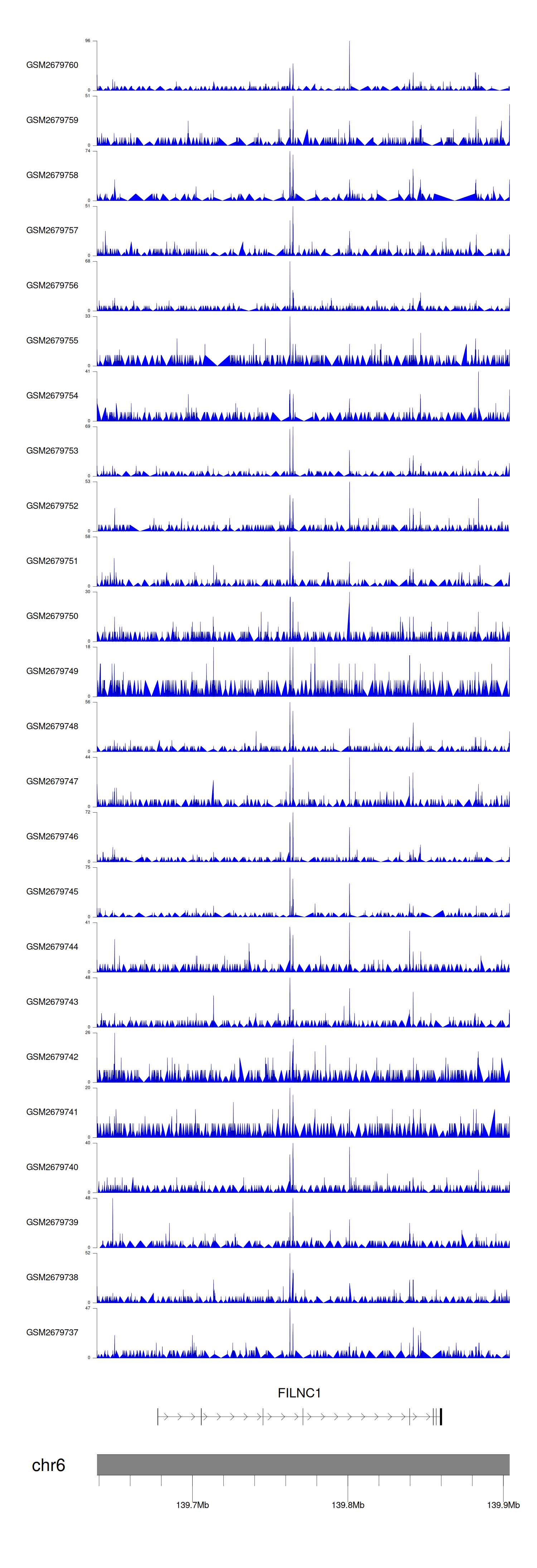> Dataset: GSE165703 - FILNC1 peak across samples