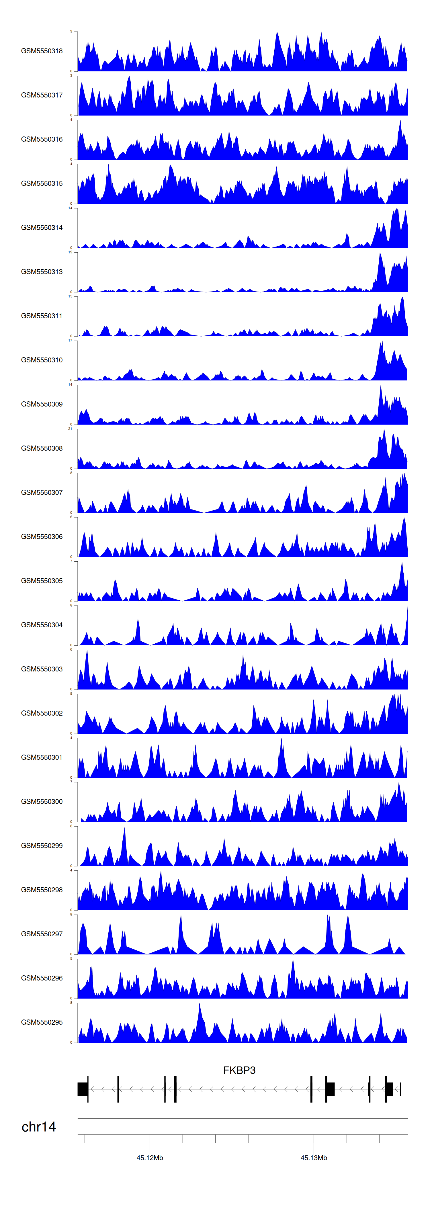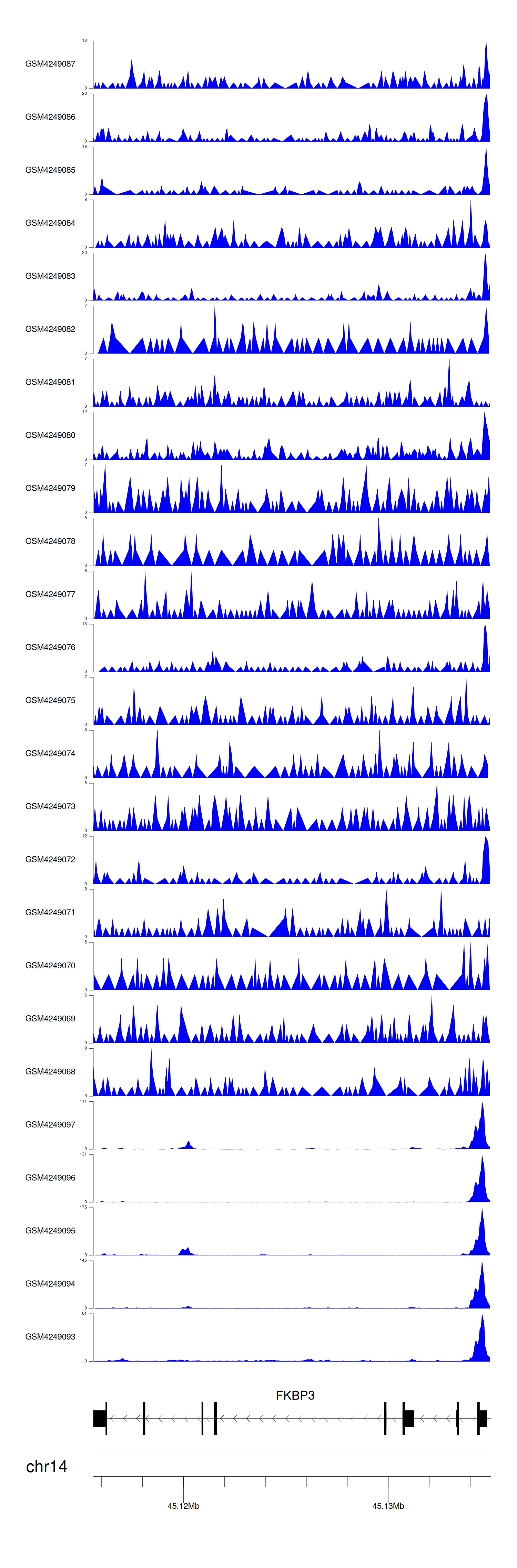 > Dataset: GSE143026 - FKBP3 peak across samples