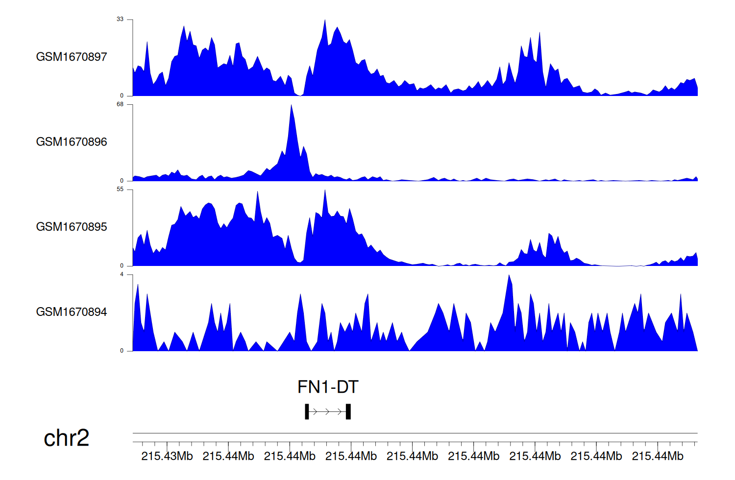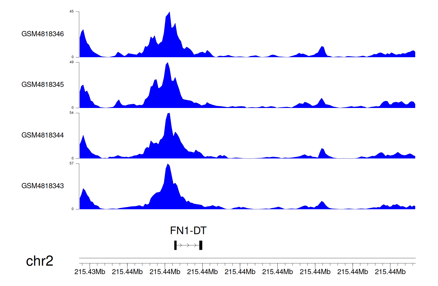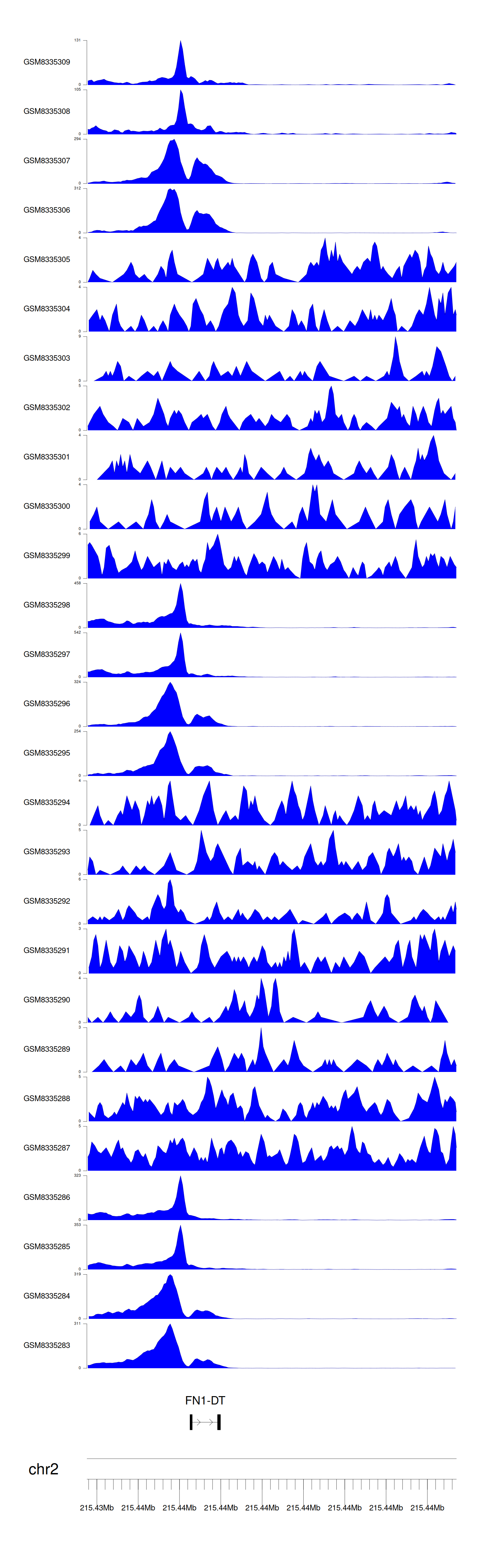> Dataset: GSE270130 - FN1-DT peak across samples