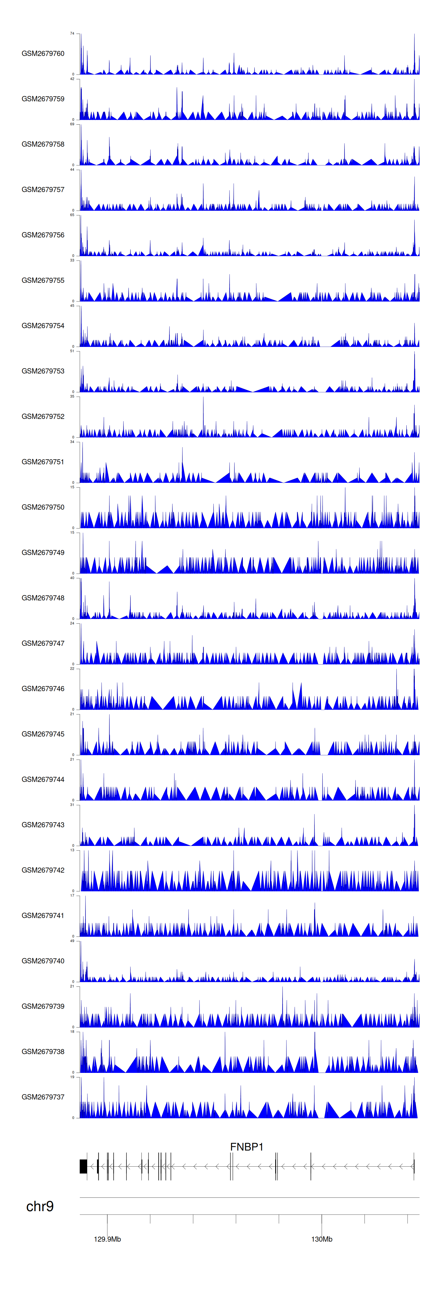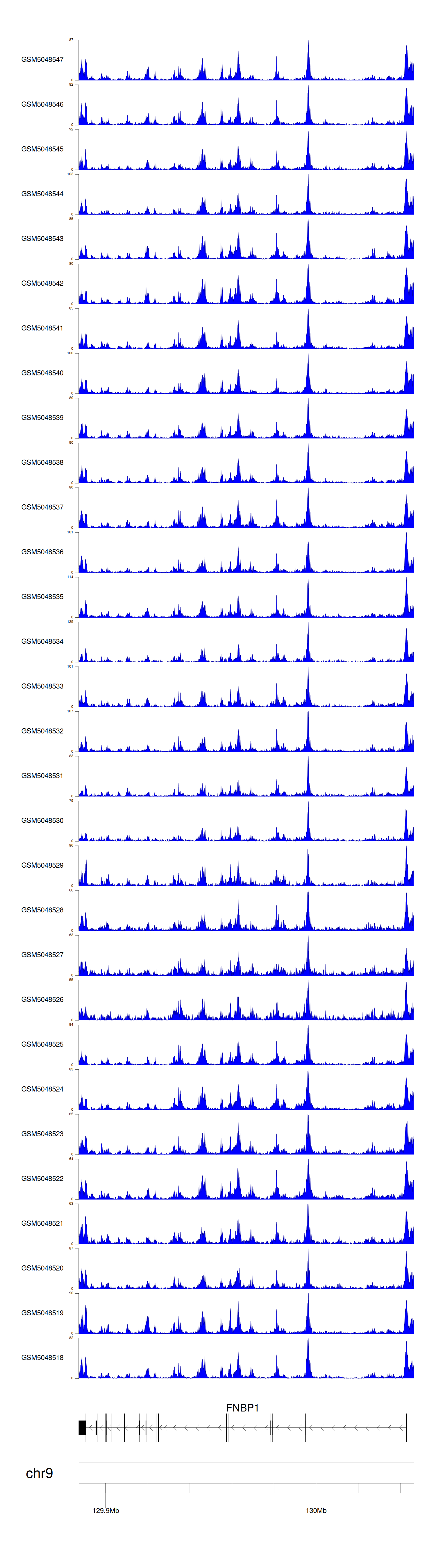 > Dataset: GSE30738 - FNBP1 peak across samples