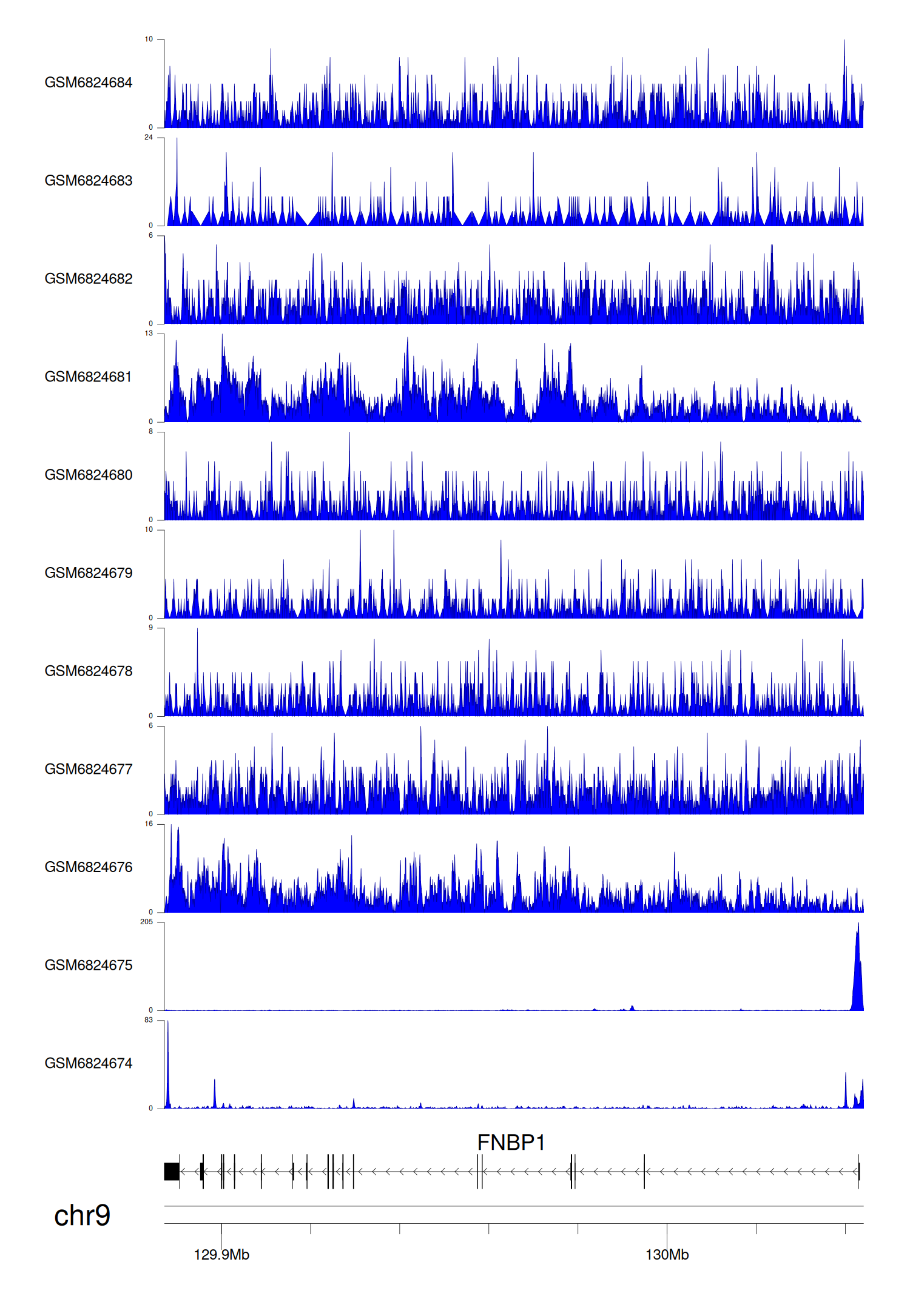 > Dataset: GSE165703 - FNBP1 peak across samples
