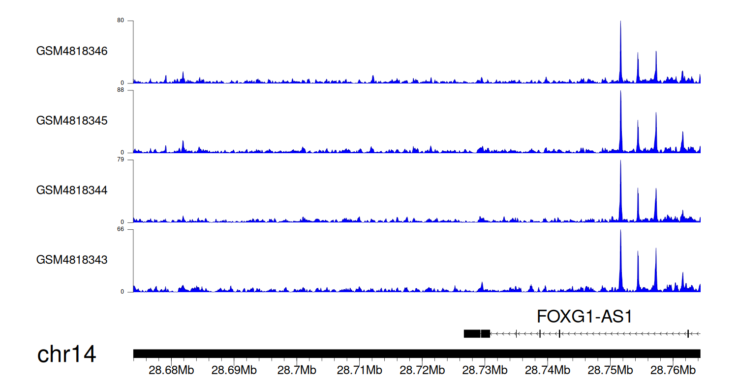> Dataset: GSE270130 - FOXG1-AS1 peak across samples