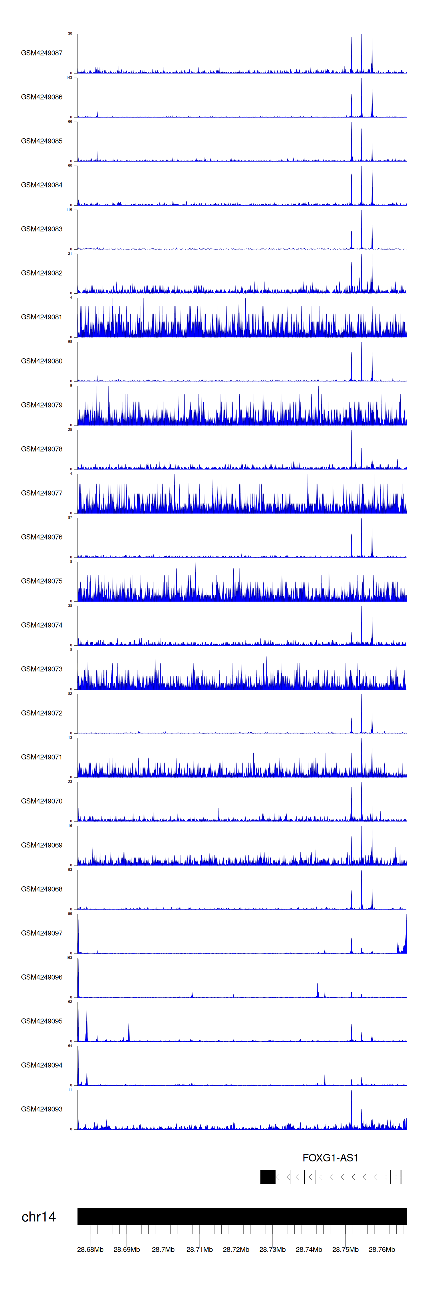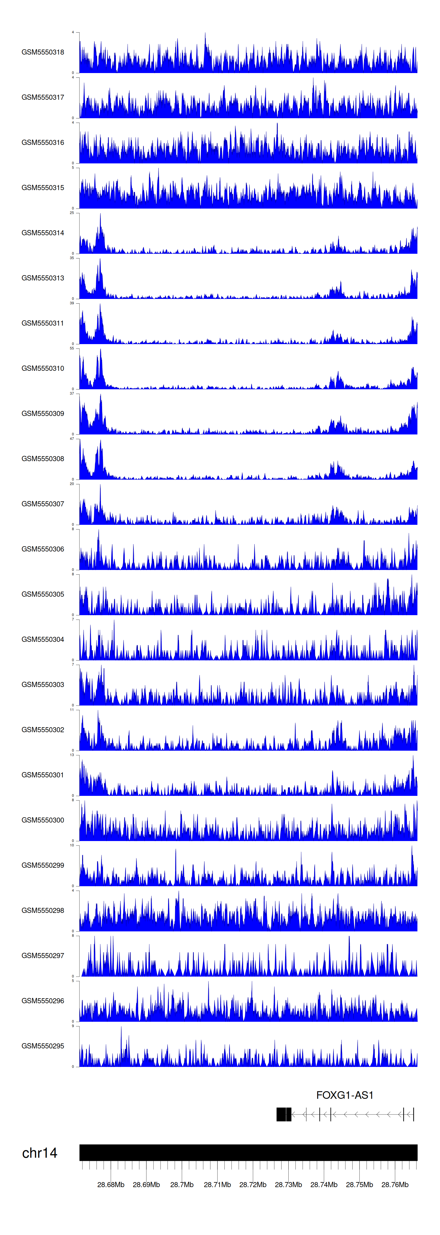 > Dataset: GSE143026 - FOXG1-AS1 peak across samples