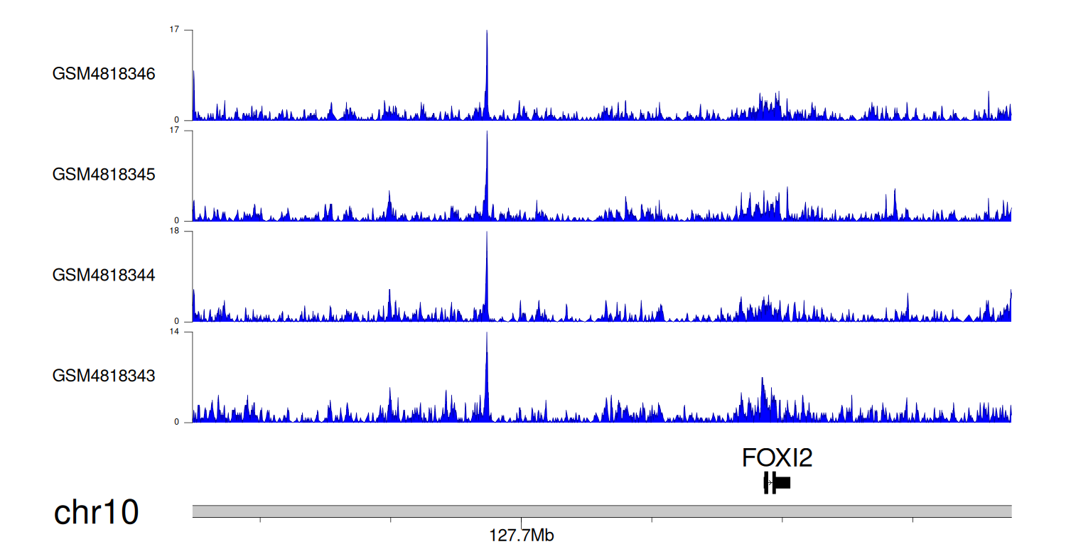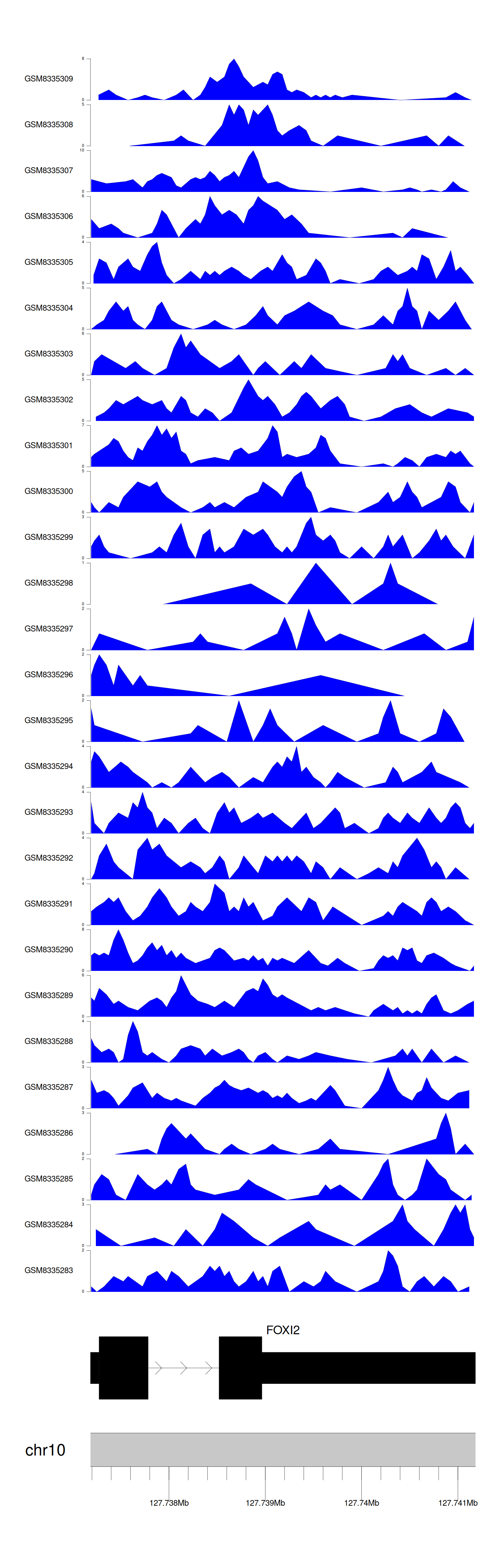 > Dataset: GSE270130 - FOXI2 peak across samples