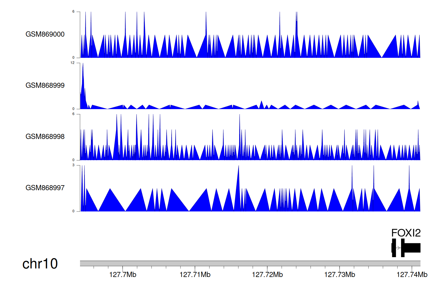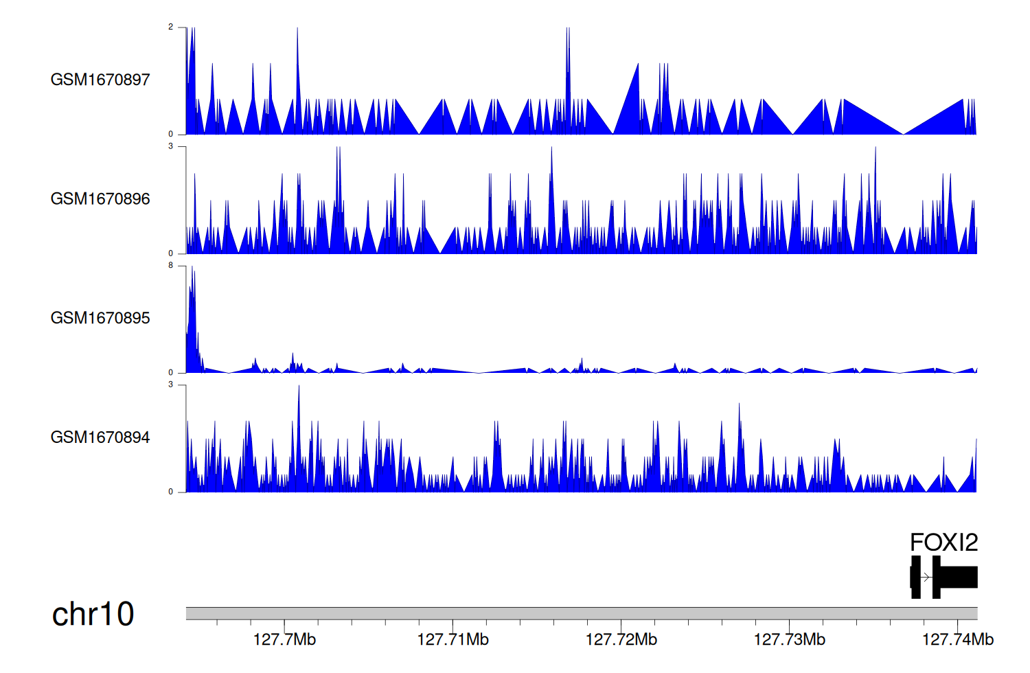 > Dataset: GSE68402 - FOXI2 peak across samples