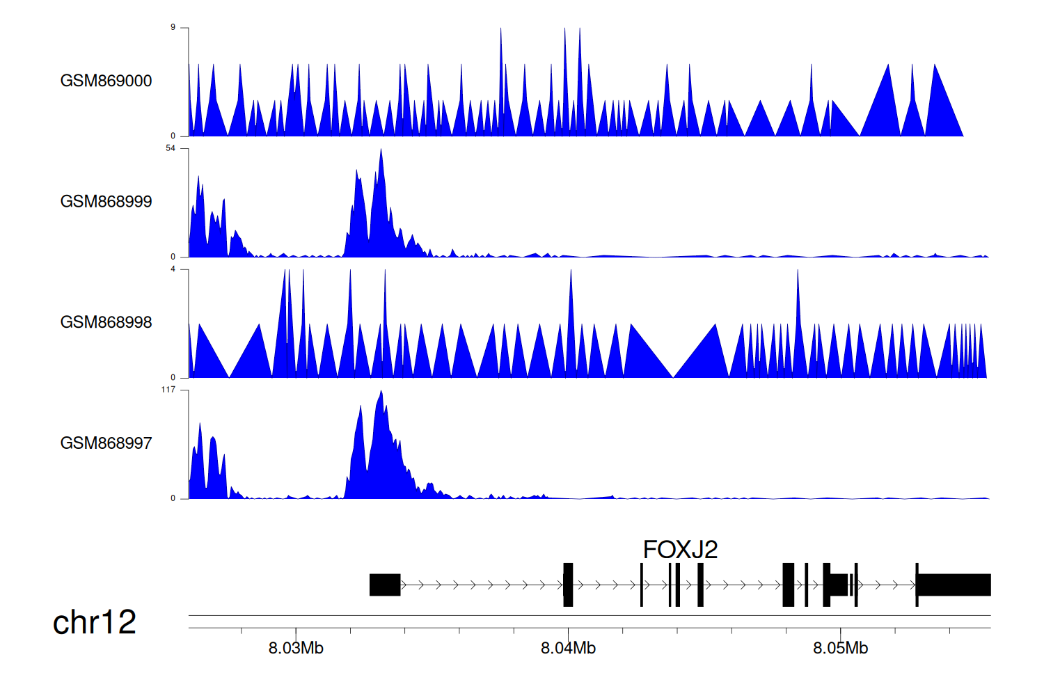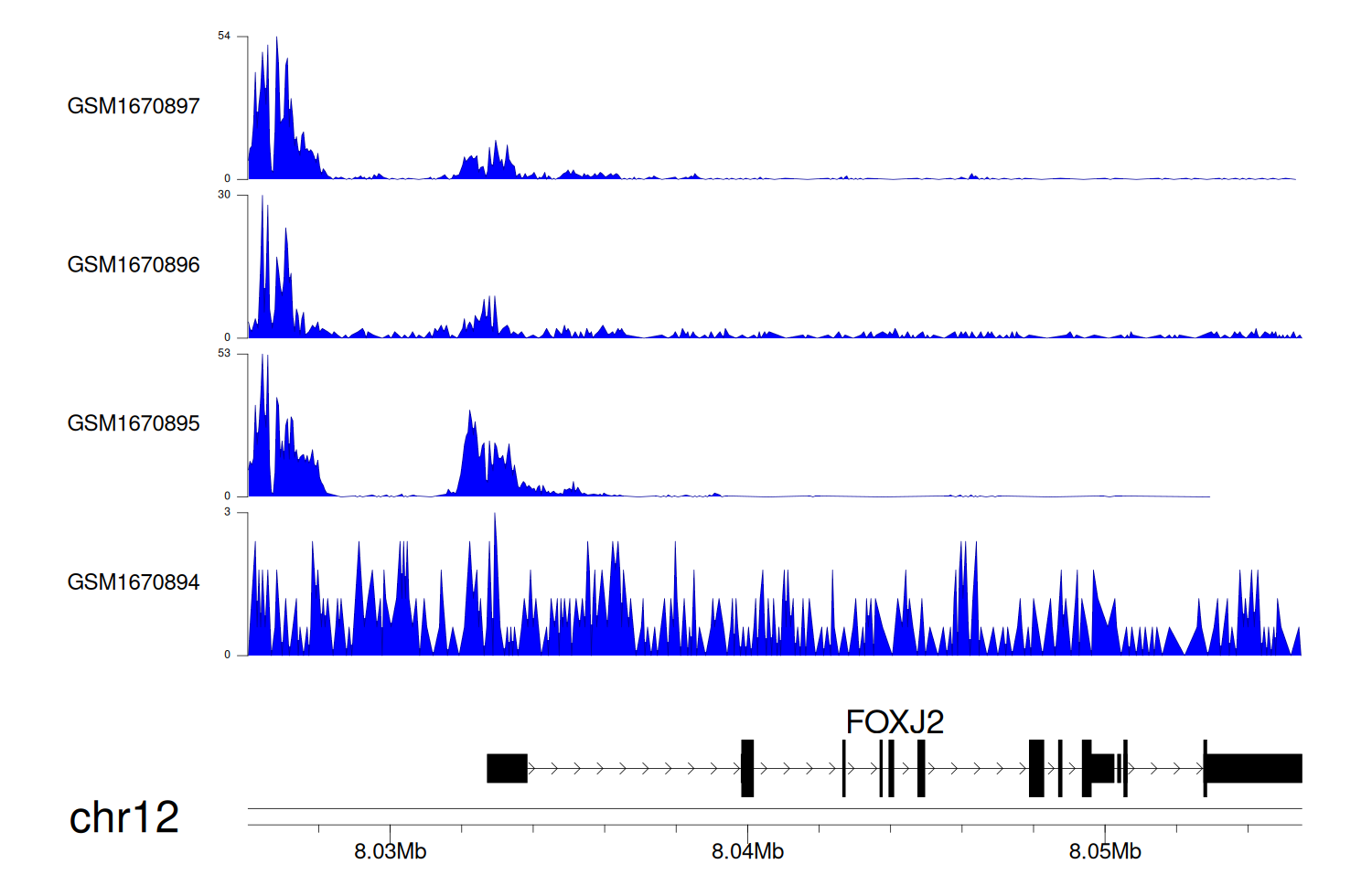 > Dataset: GSE68402 - FOXJ2 peak across samples