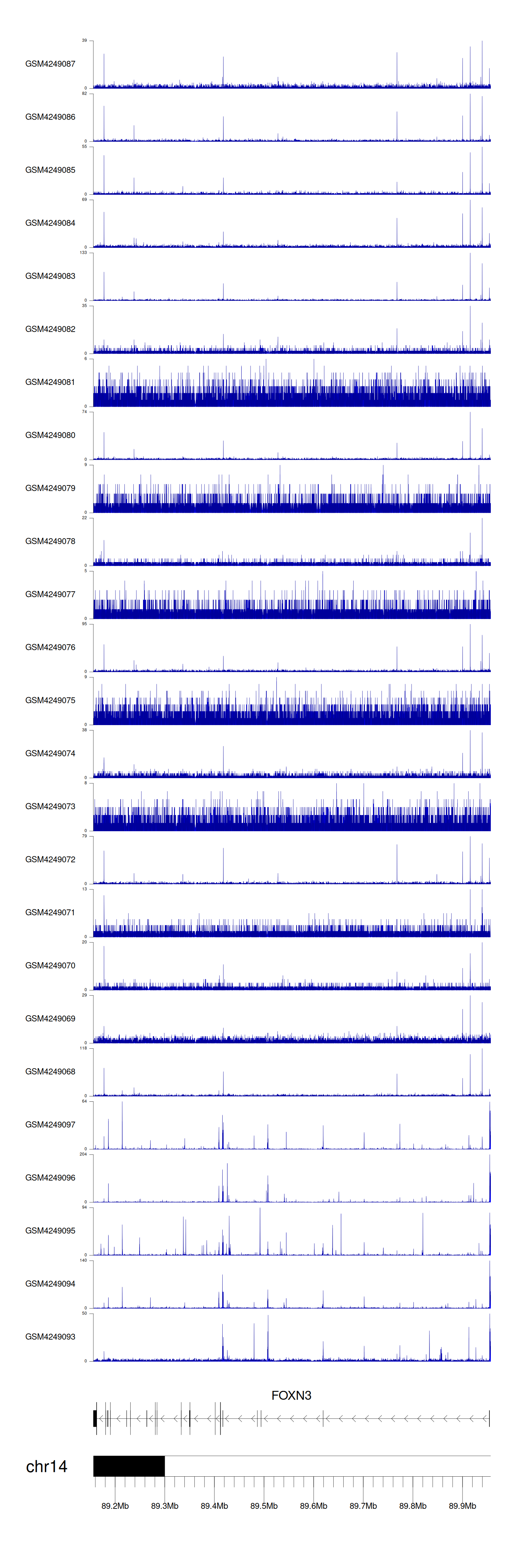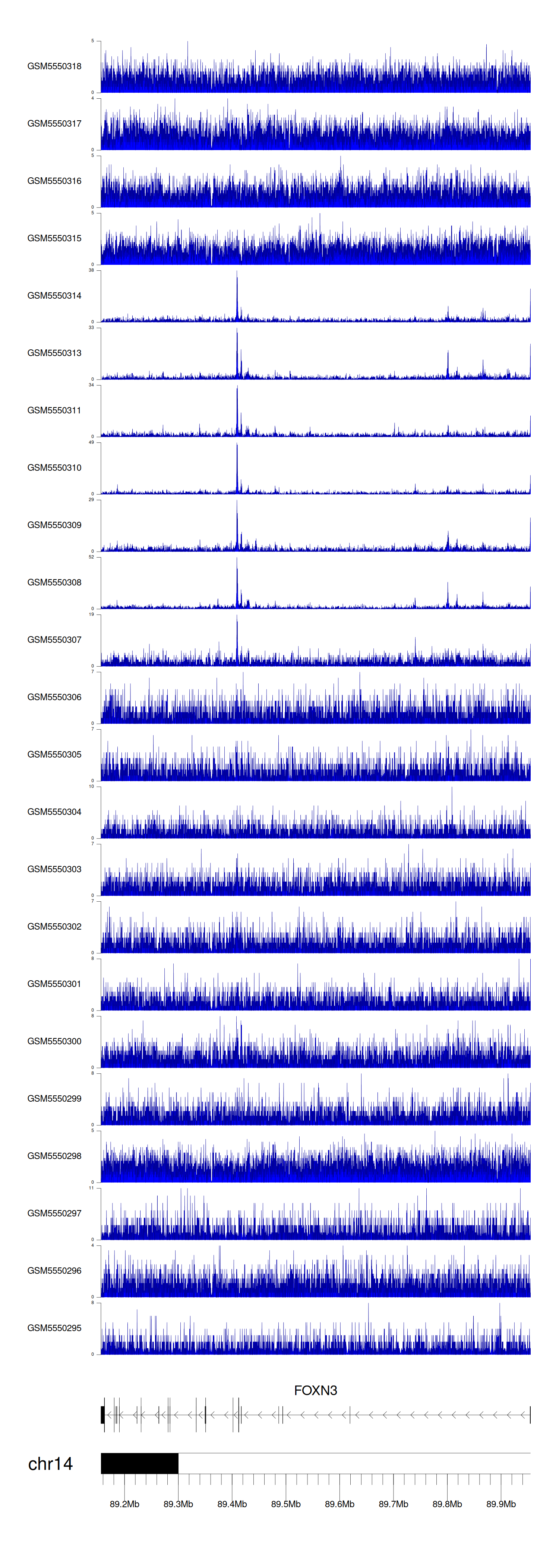 > Dataset: GSE143026 - FOXN3 peak across samples