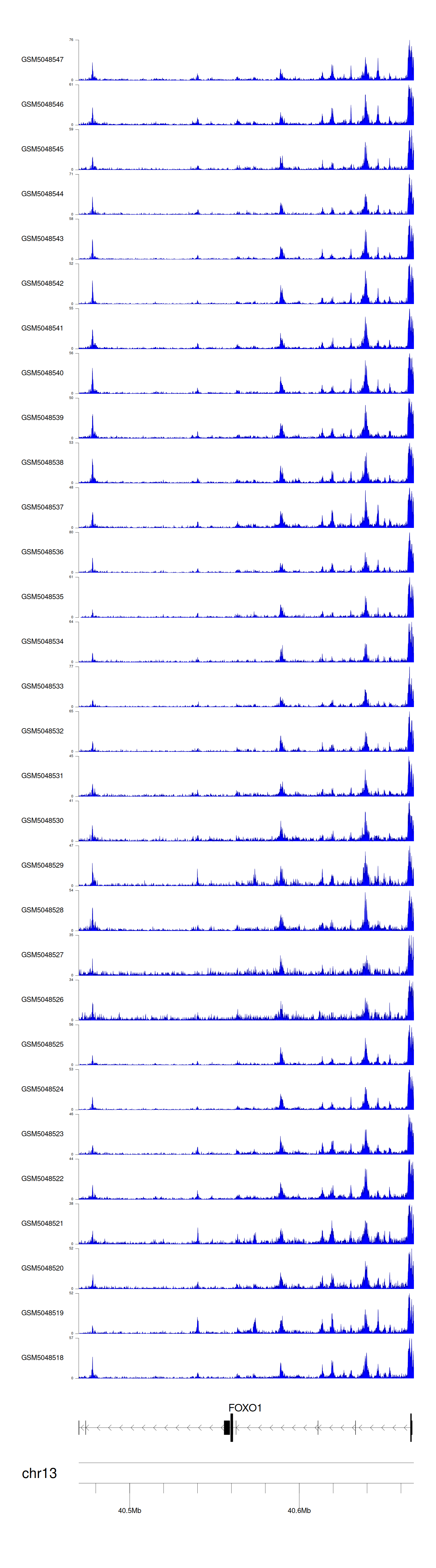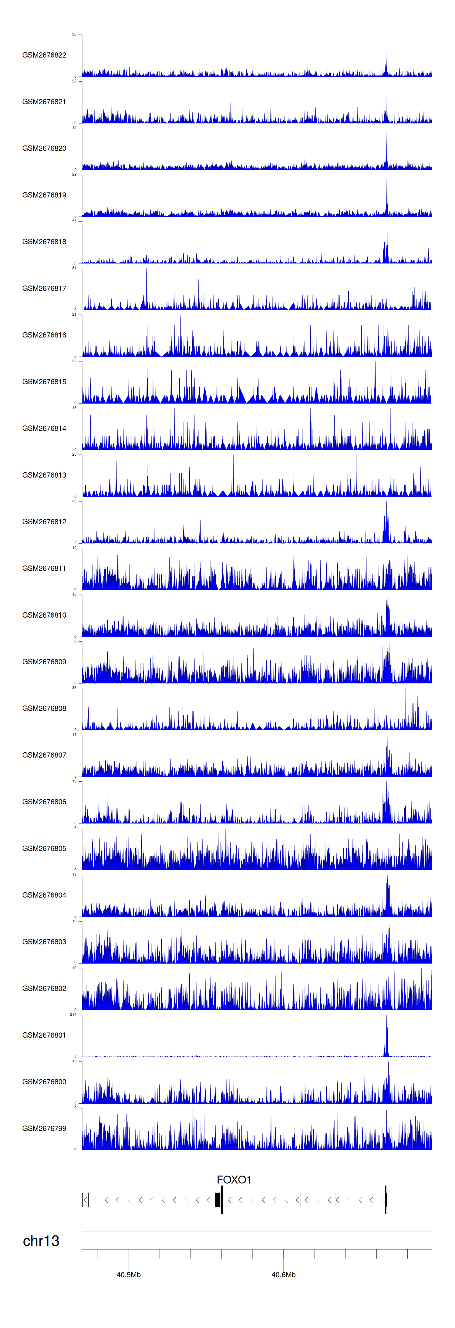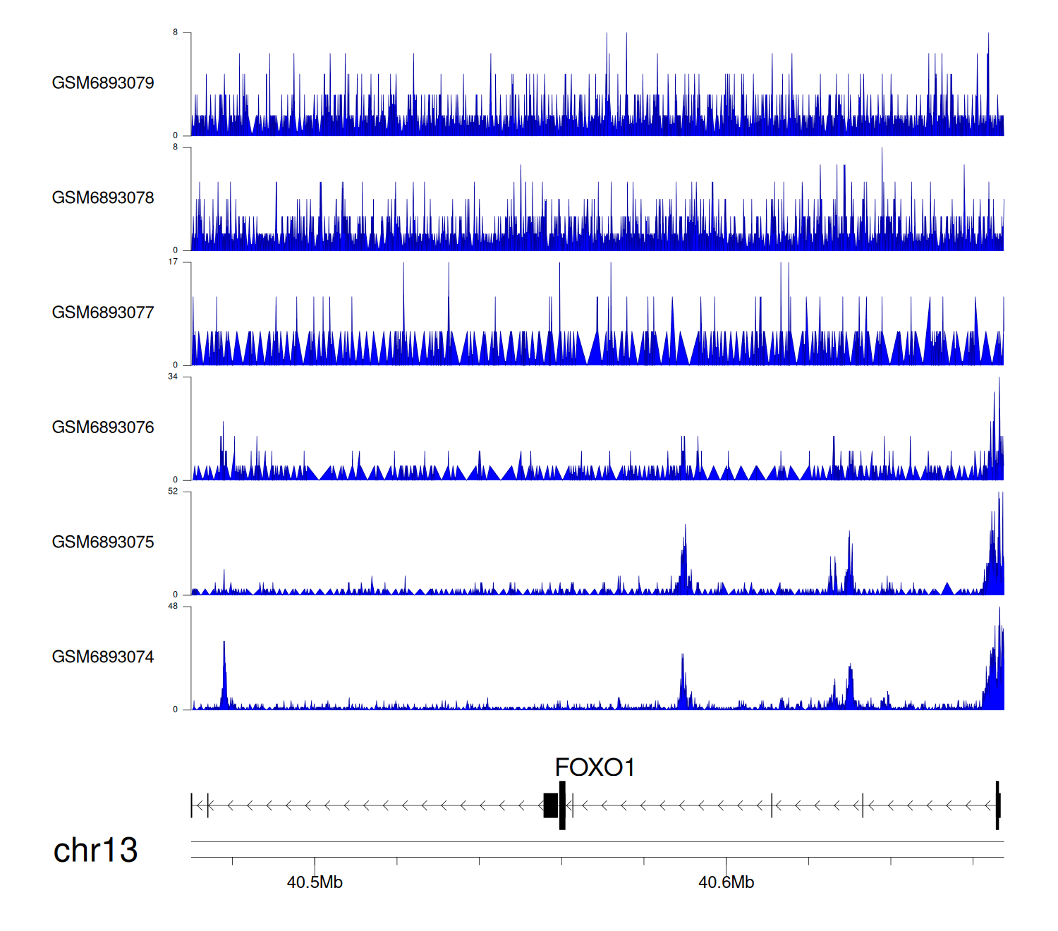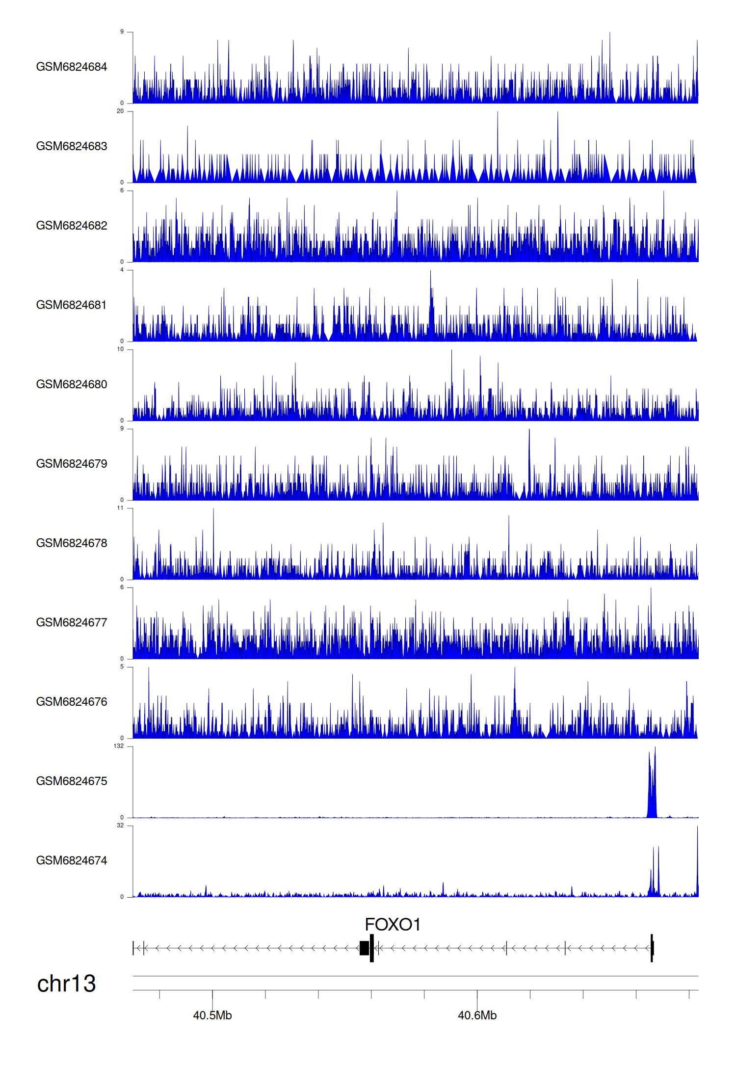 > Dataset: GSE165703 - FOXO1 peak across samples
