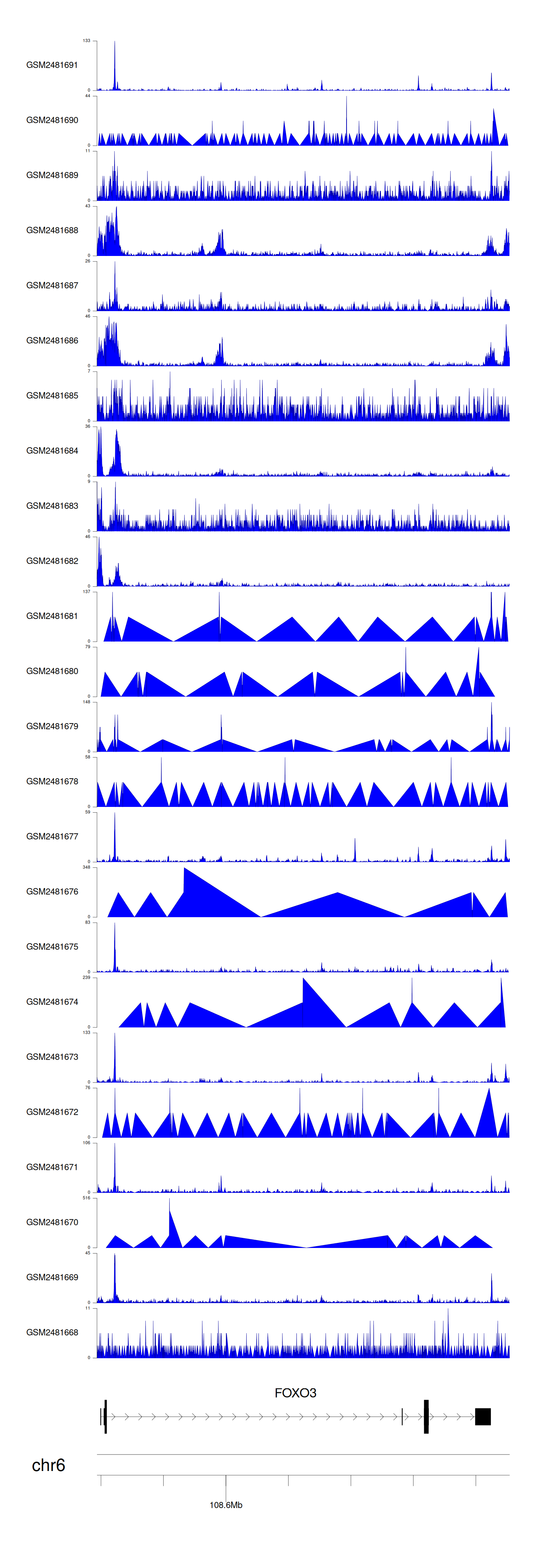 > Dataset: GSE94732 - FOXO3 peak across samples