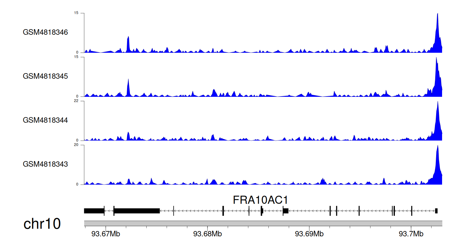 > Dataset: GSE270130 - FRA10AC1 peak across samples