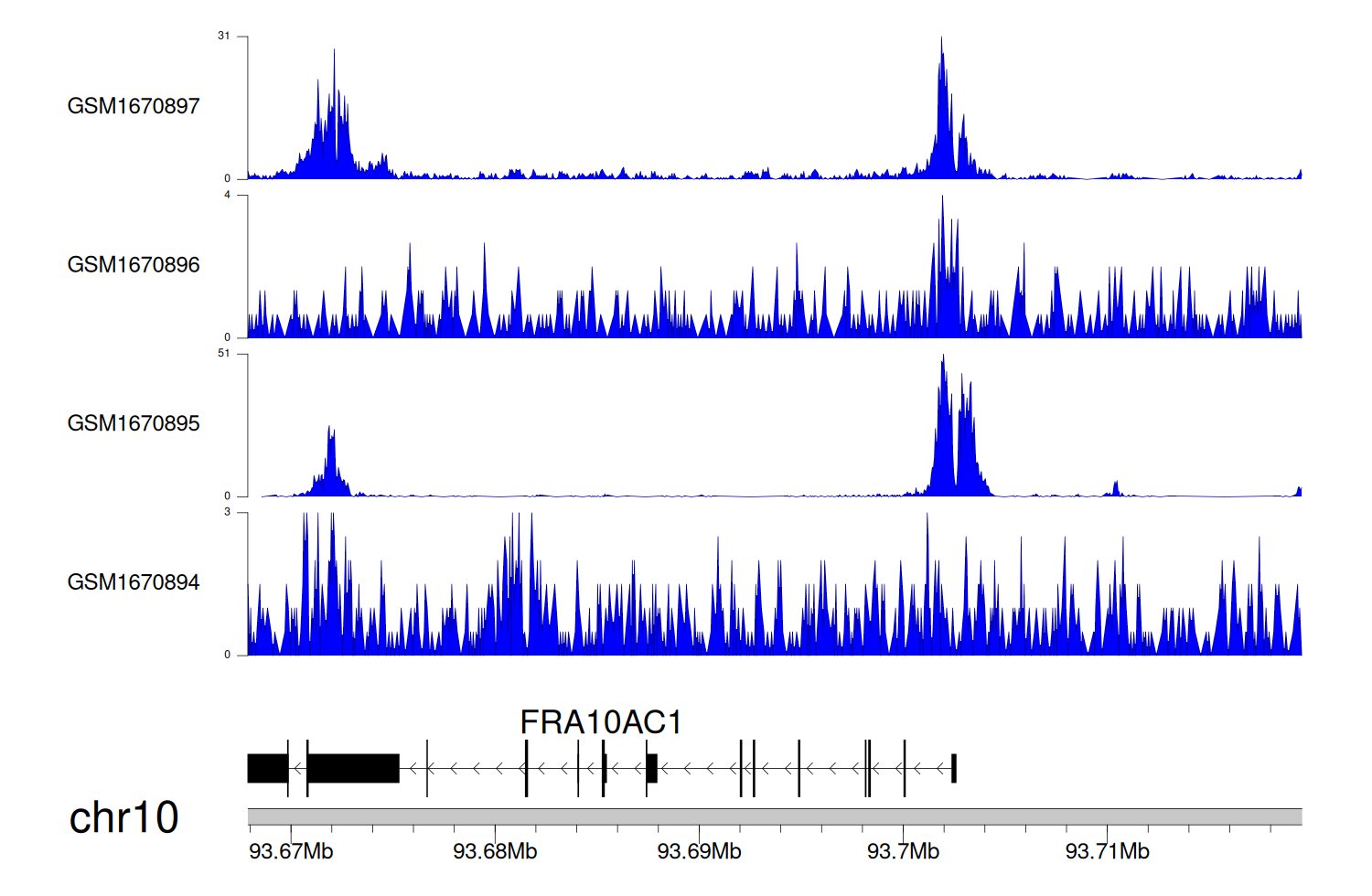 > Dataset: GSE68402 - FRA10AC1 peak across samples