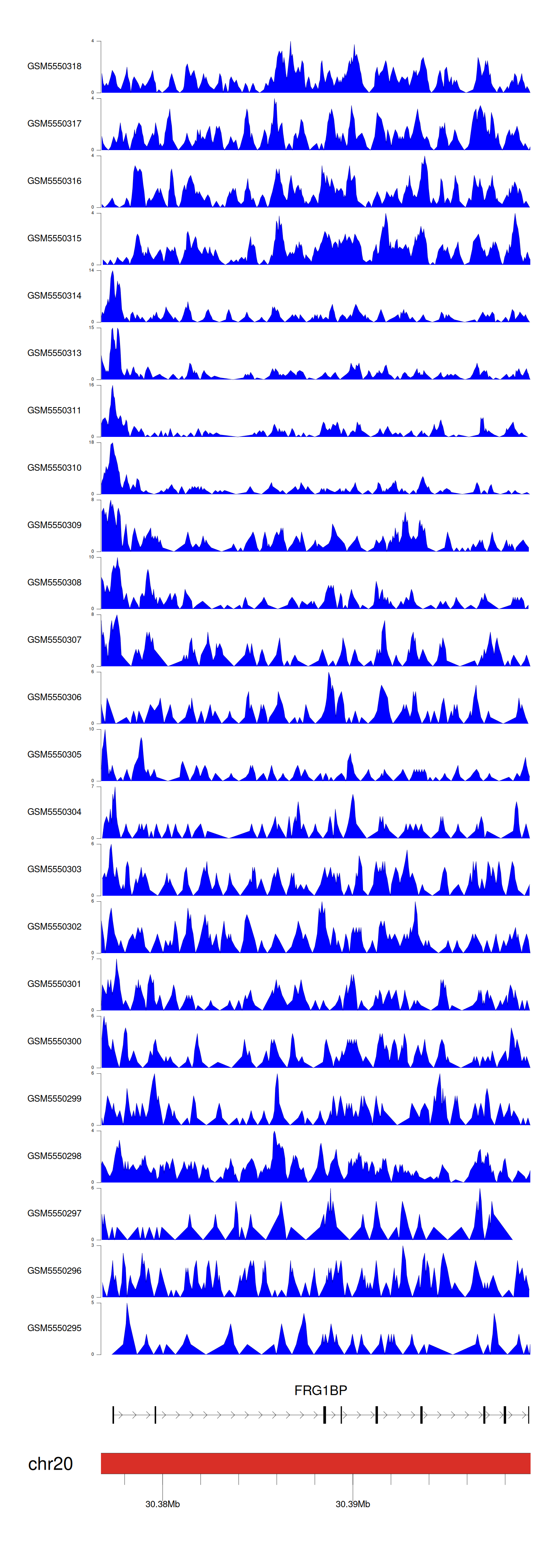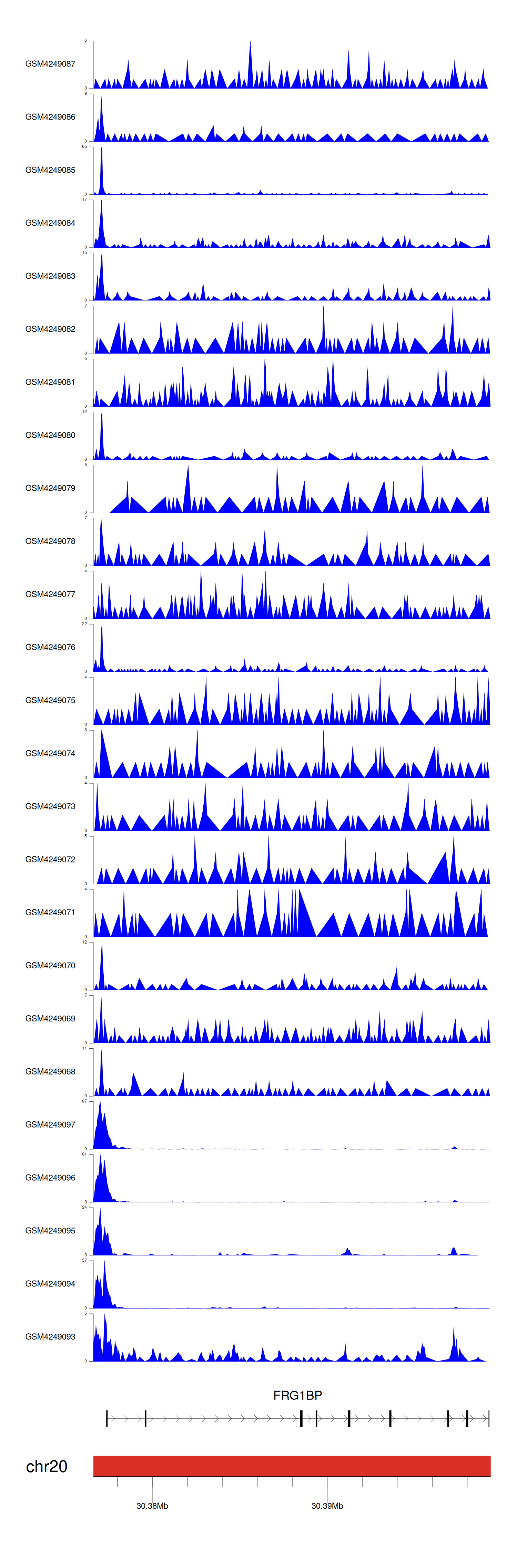 > Dataset: GSE143026 - FRG1BP peak across samples