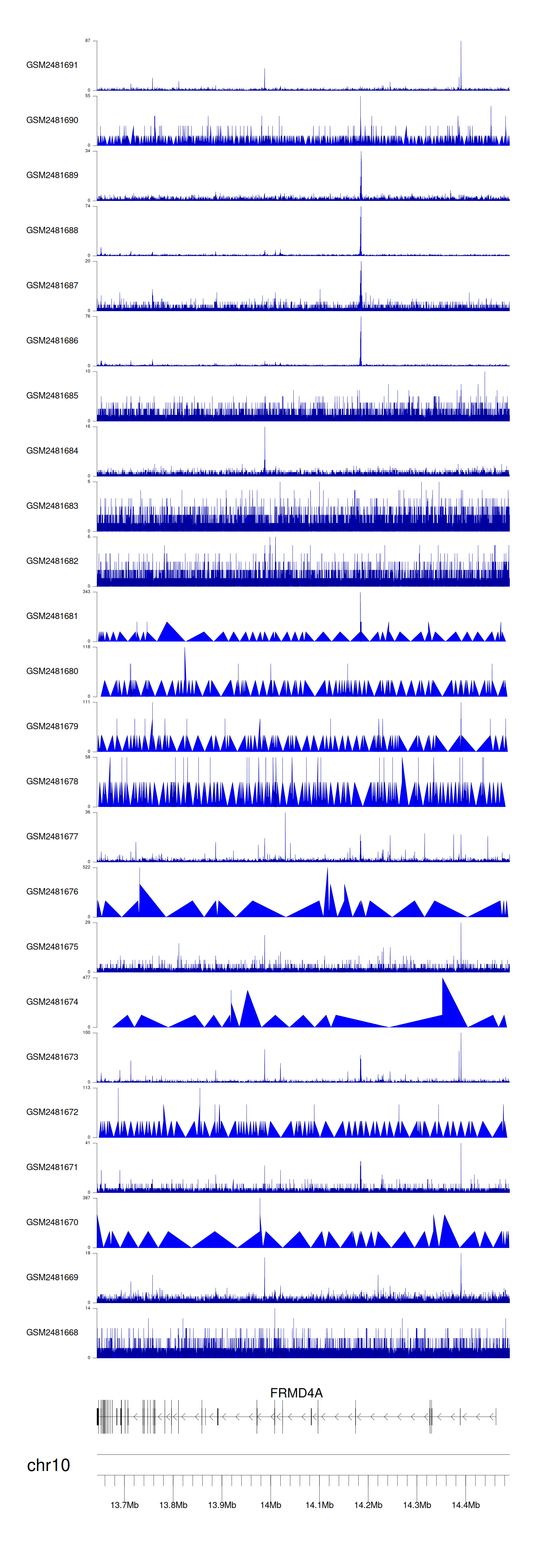 > Dataset: GSE94732 - FRMD4A peak across samples