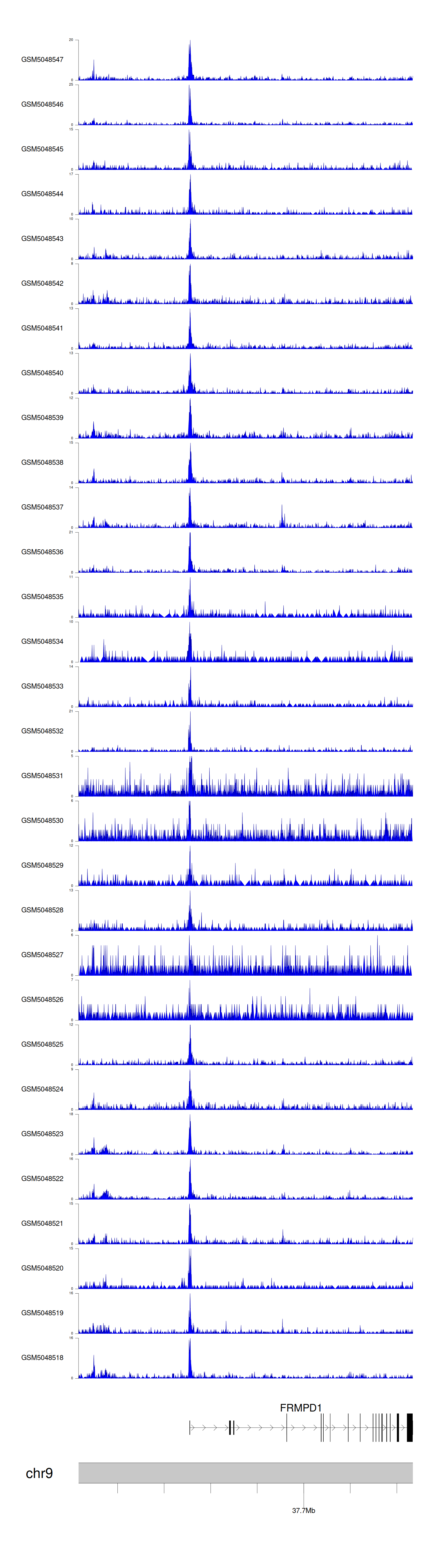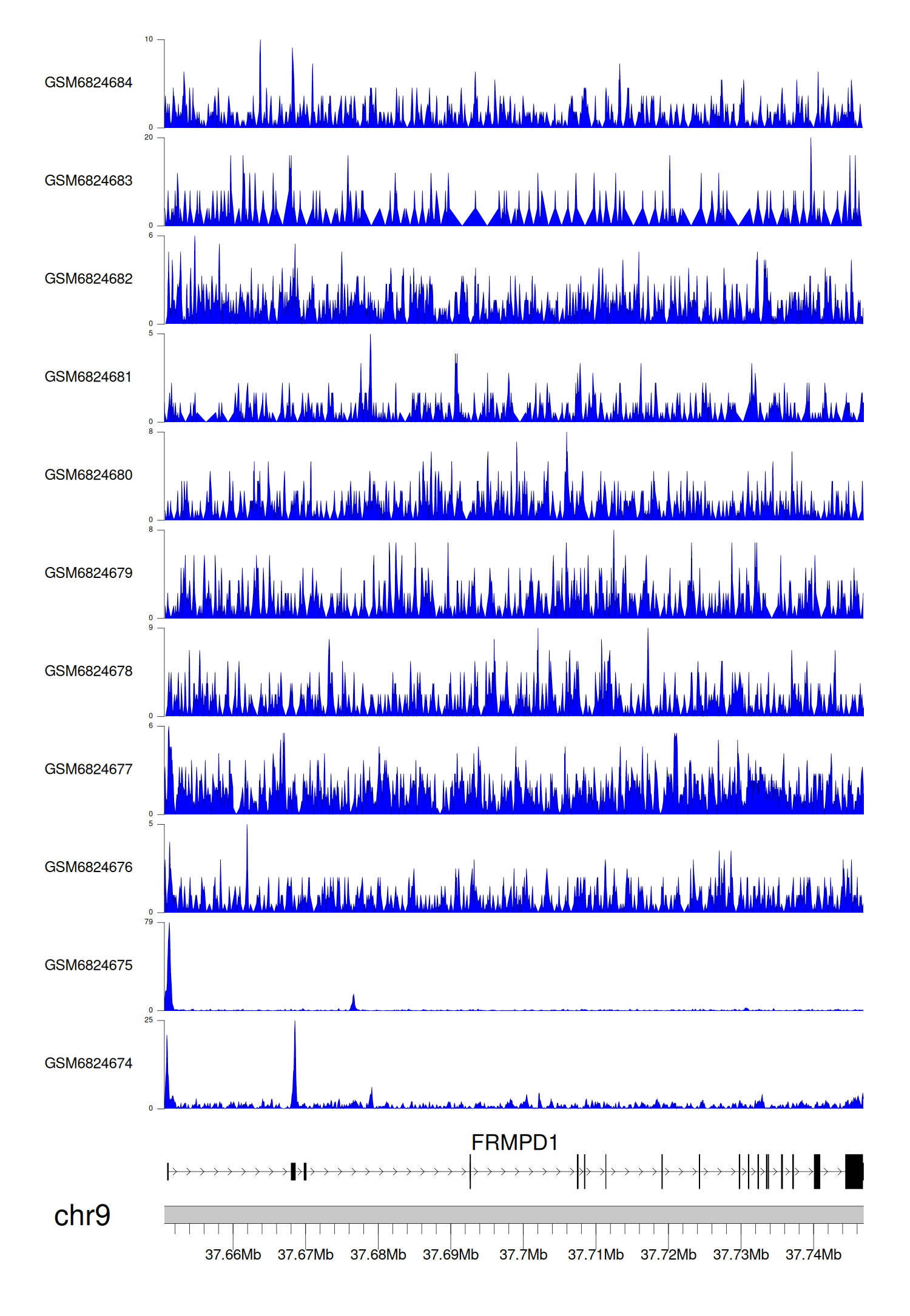 > Dataset: GSE144329 - FRMPD1 peak across samples