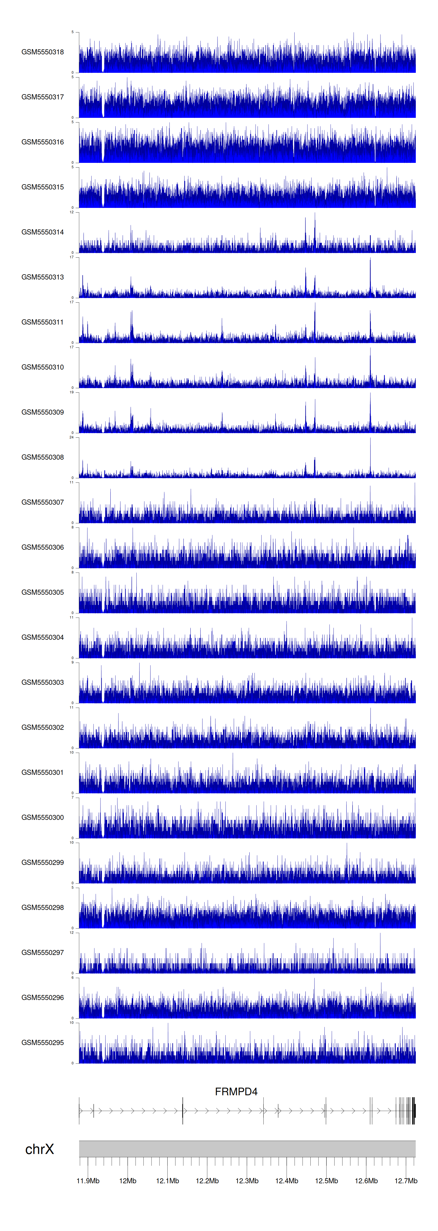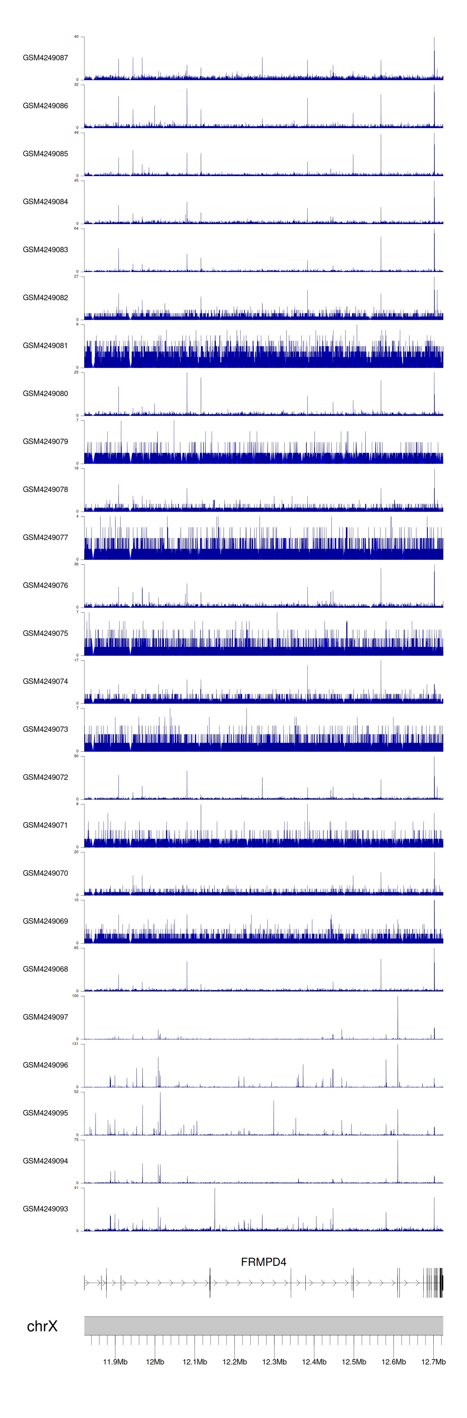 > Dataset: GSE183048 - FRMPD4 peak across samples