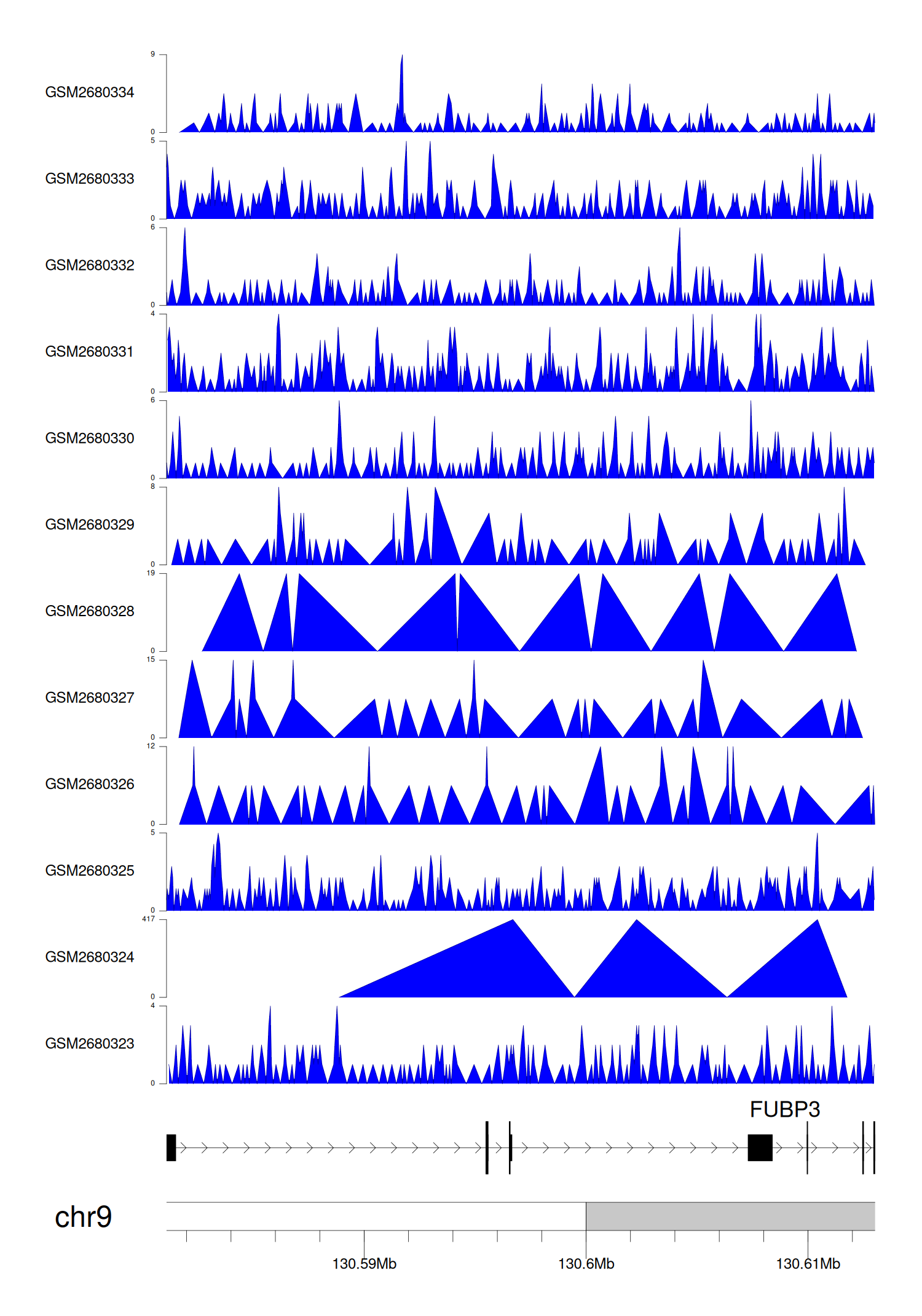 > Dataset: GSE100400 - FUBP3 peak across samples