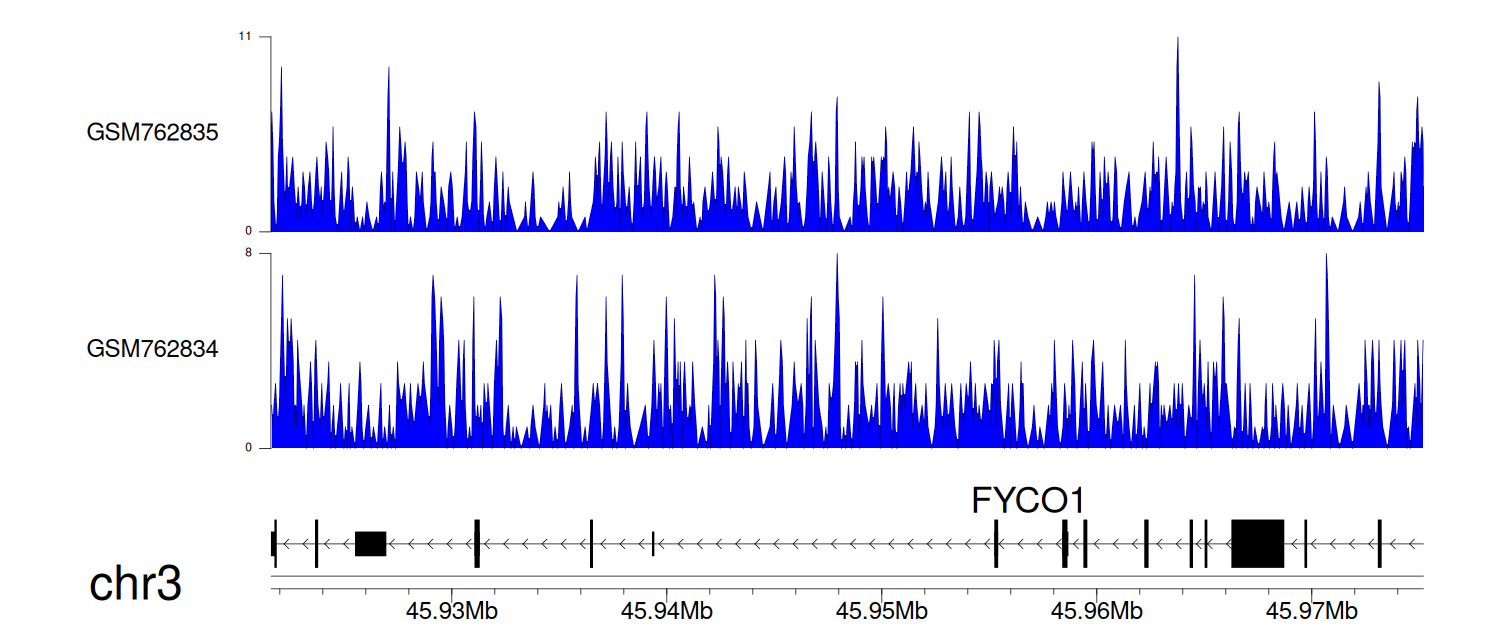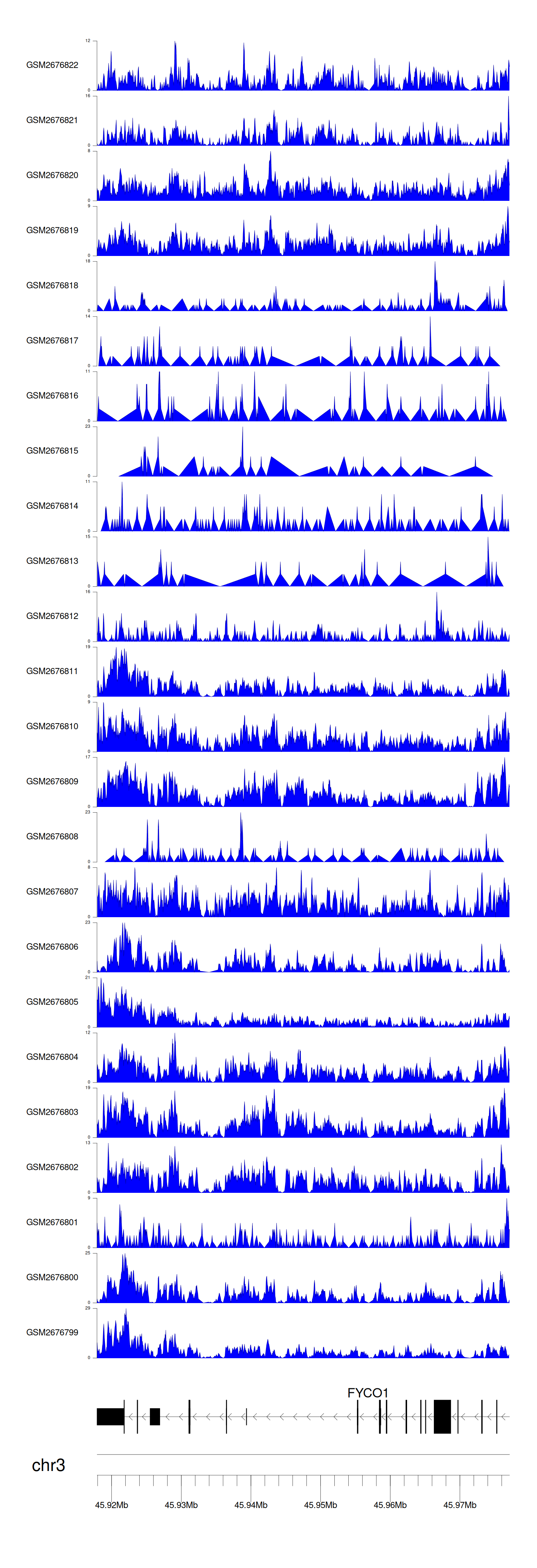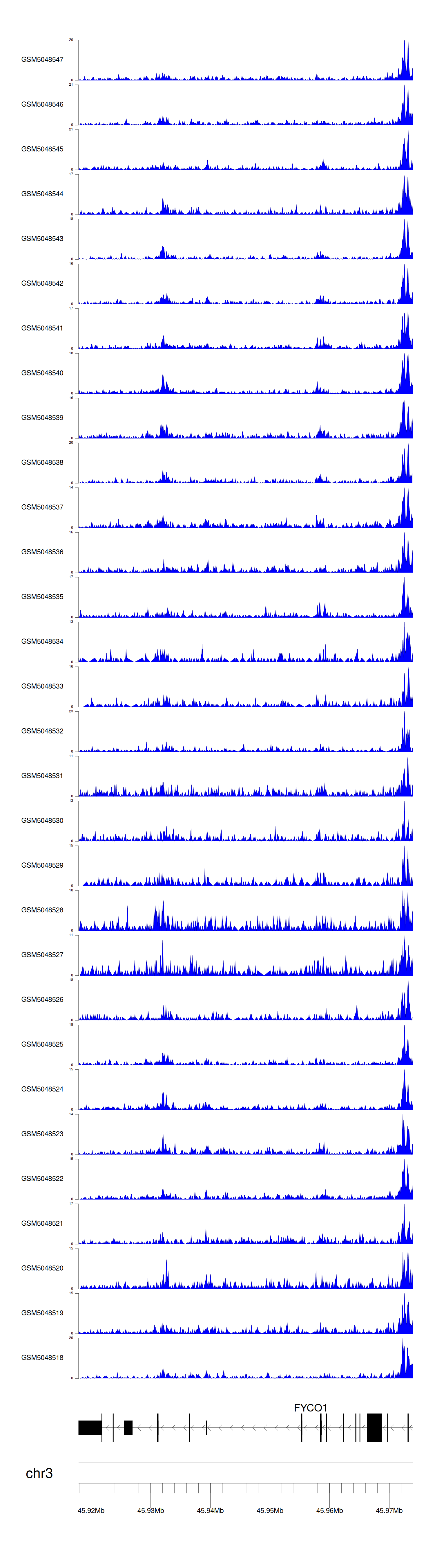 > Dataset: GSE30738 - FYCO1 peak across samples