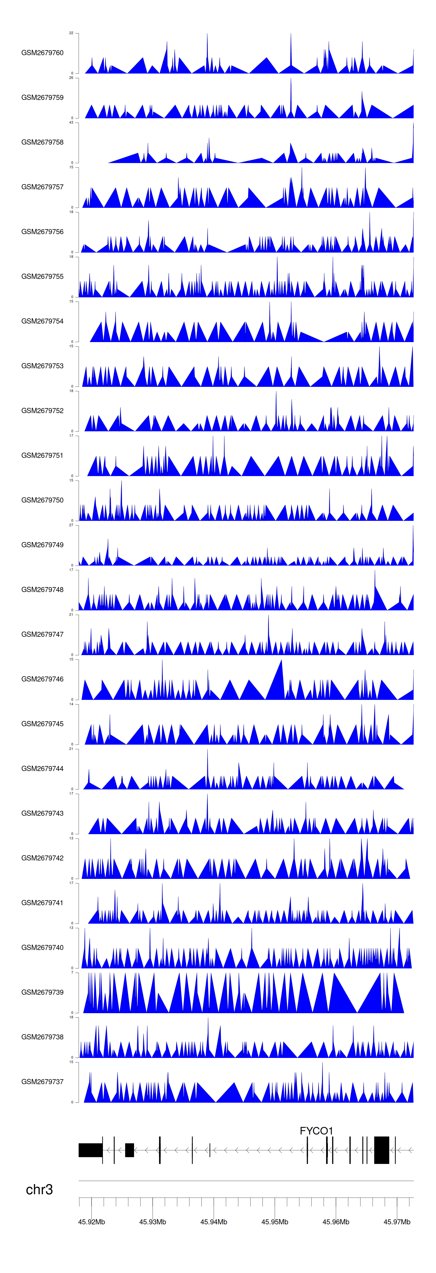 > Dataset: GSE100376 - FYCO1 peak across samples