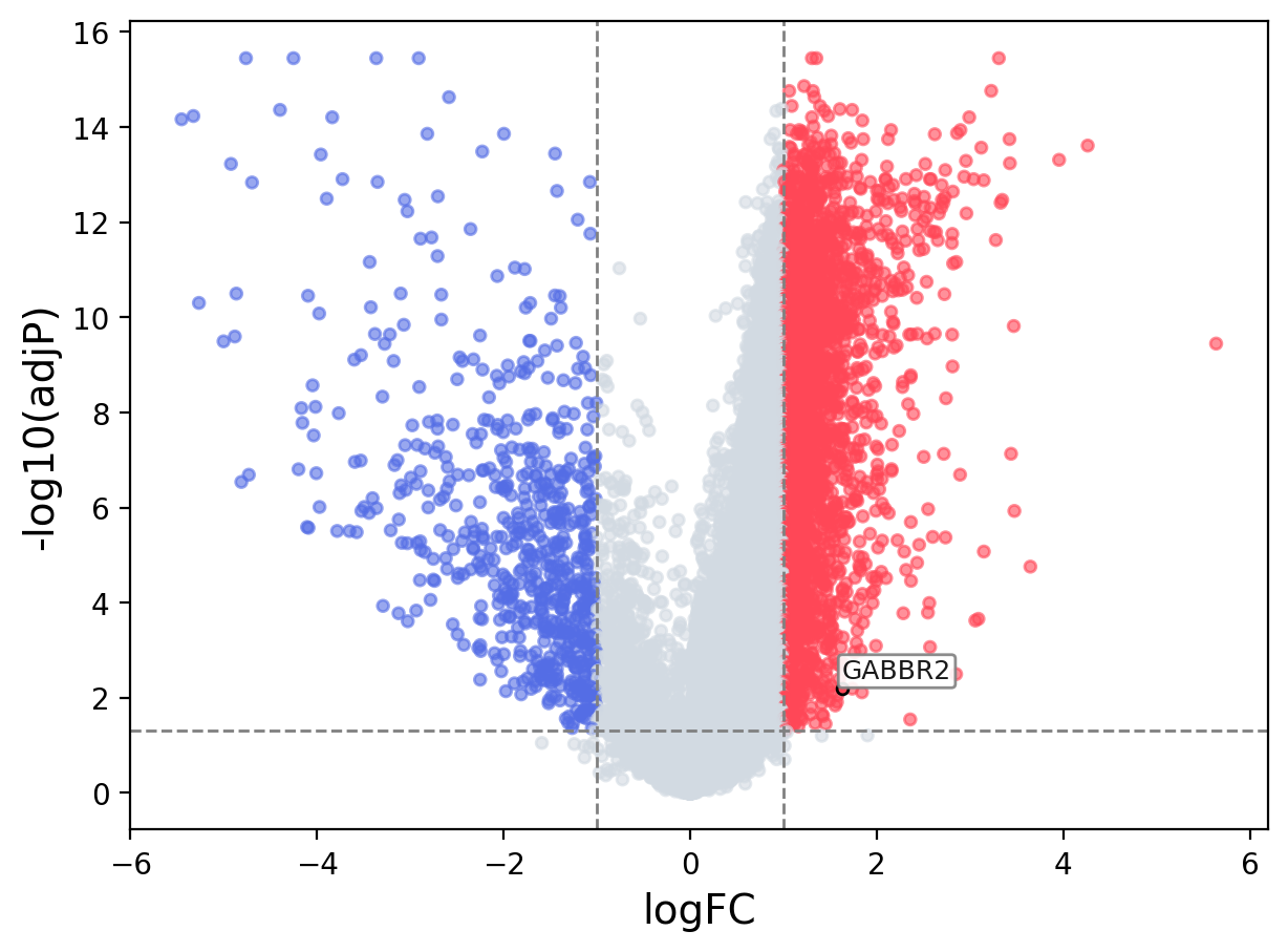 When the query gene is differentially changed in the dataset, a volcano/bar plot will be displayed.