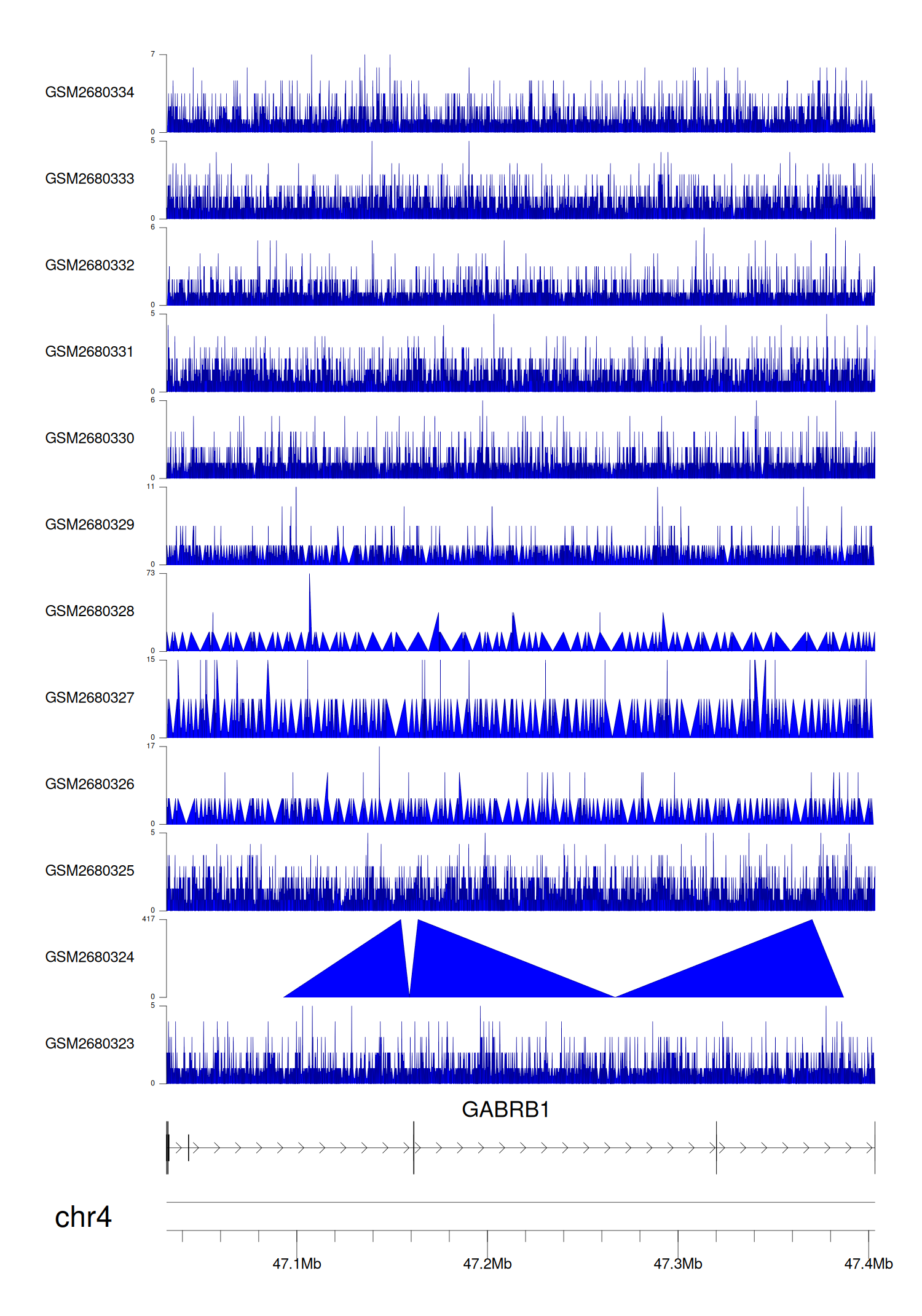 > Dataset: GSE68402 - GABRB1 peak across samples