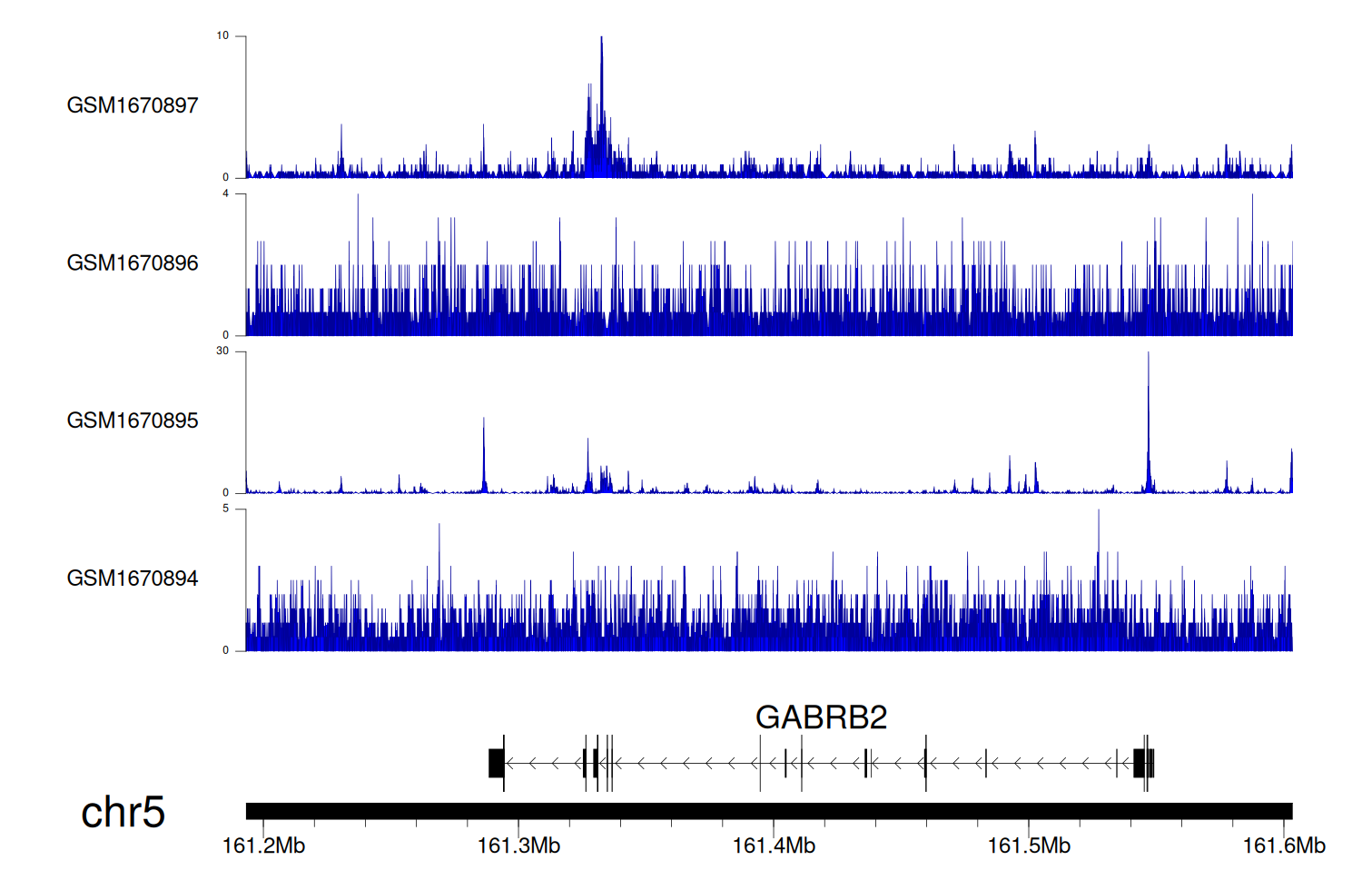 > Dataset: GSE68402 - GABRB2 peak across samples