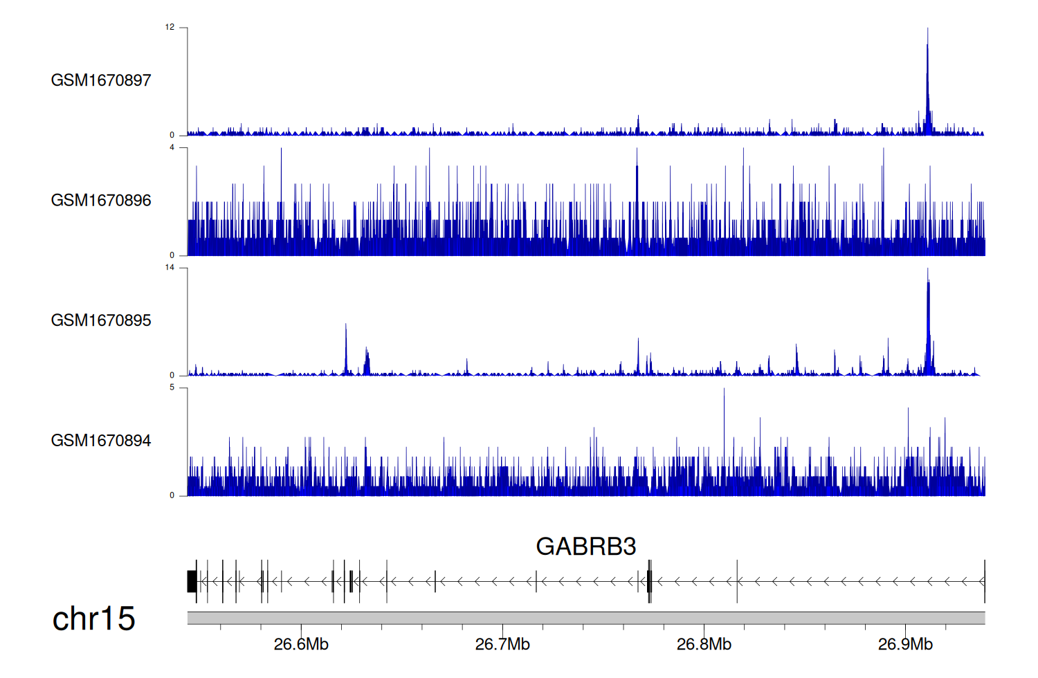 > Dataset: GSE68402 - GABRB3 peak across samples