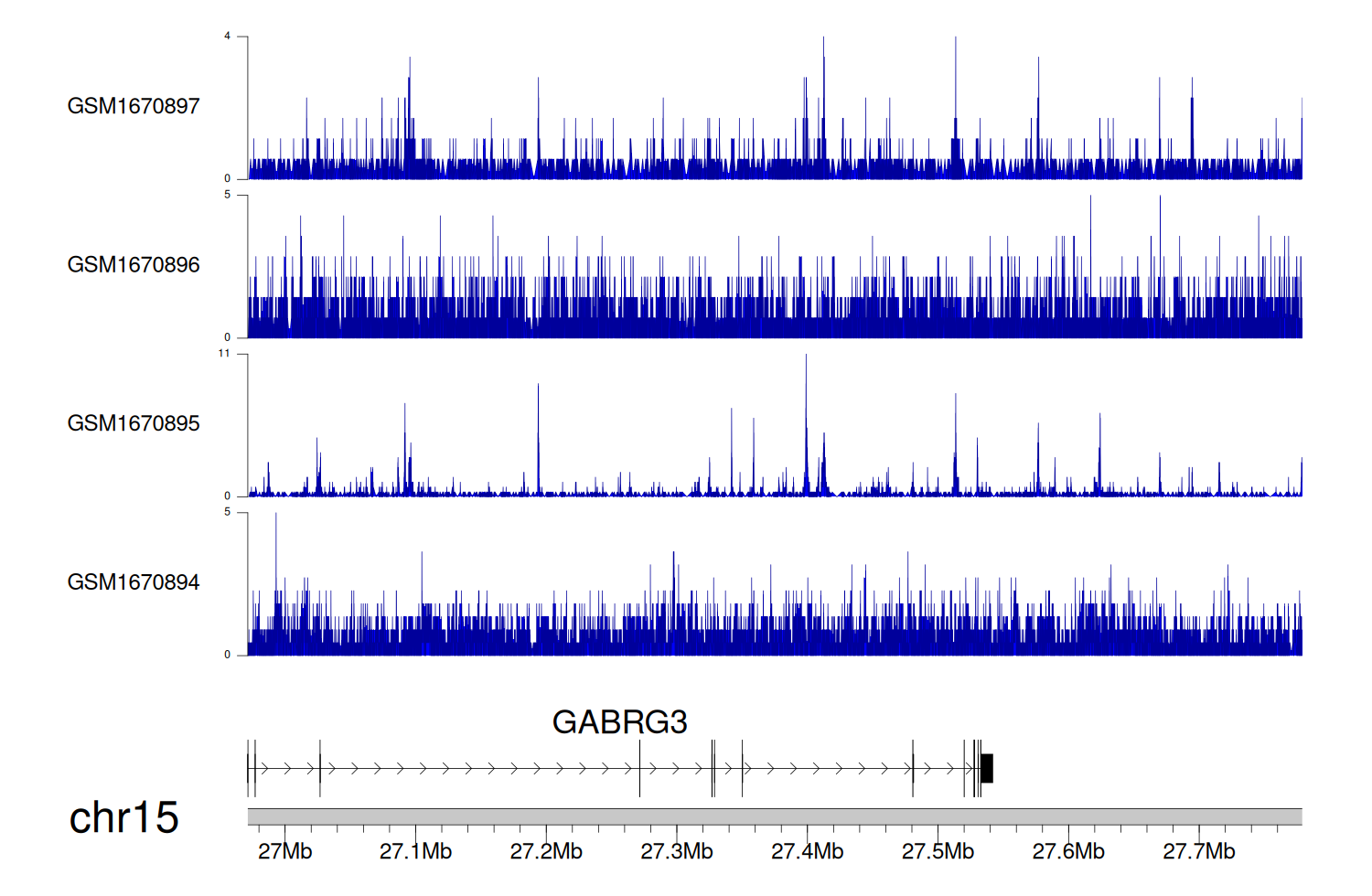 > Dataset: GSE68402 - GABRG3 peak across samples