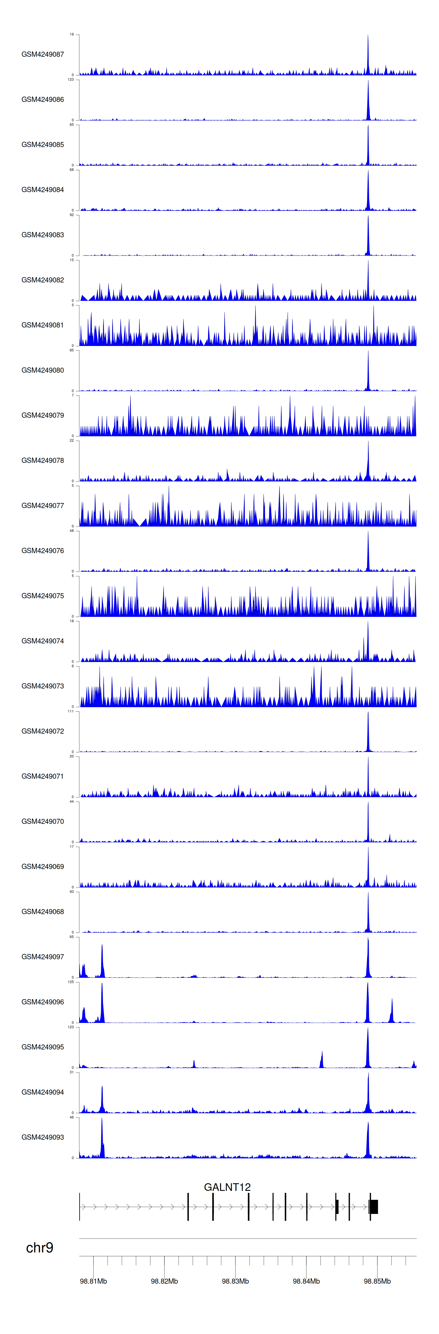 > Dataset: GSE143026 - GALNT12 peak across samples