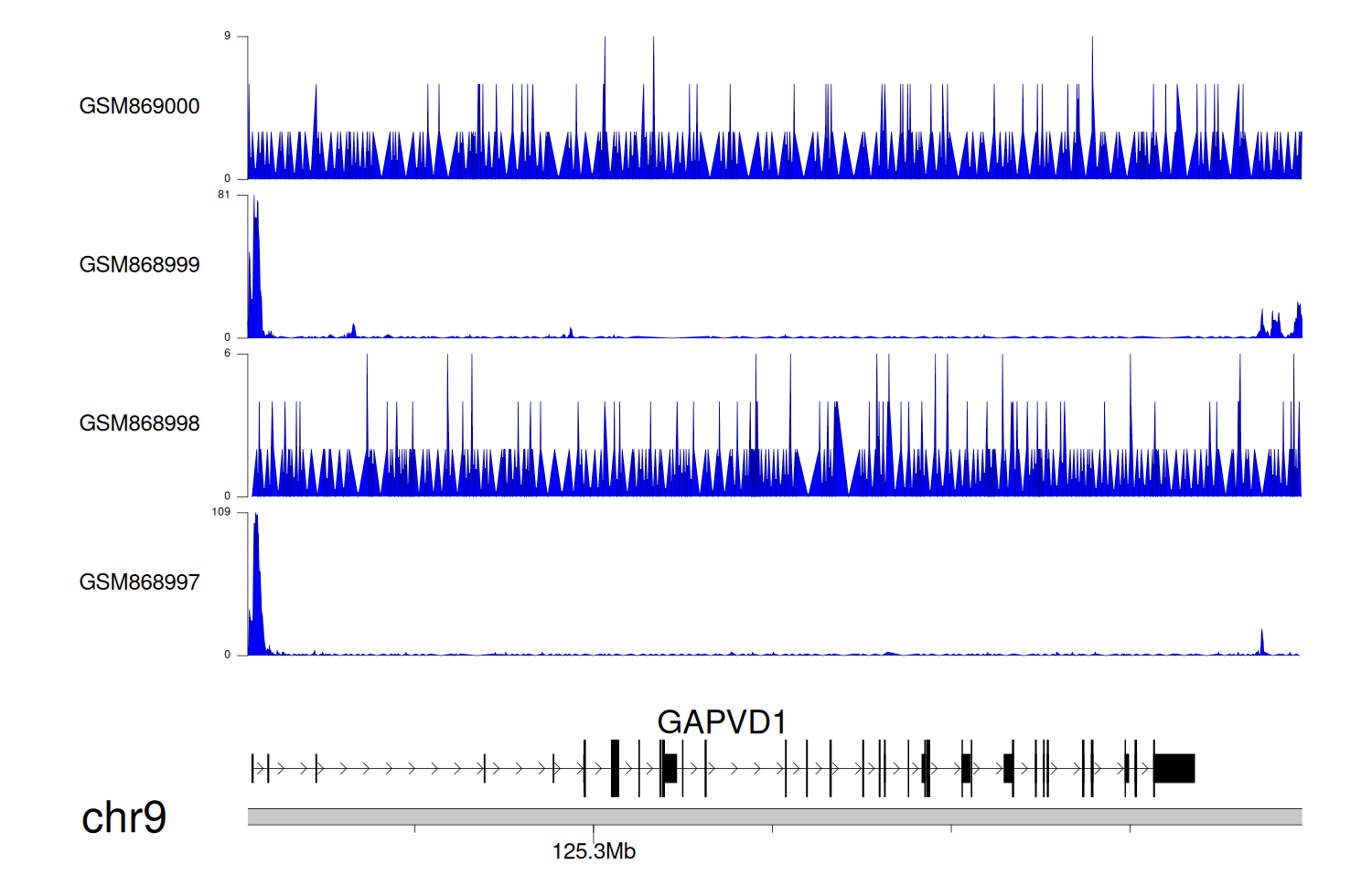 > Dataset: GSE131257 - GAPVD1 peak across samples