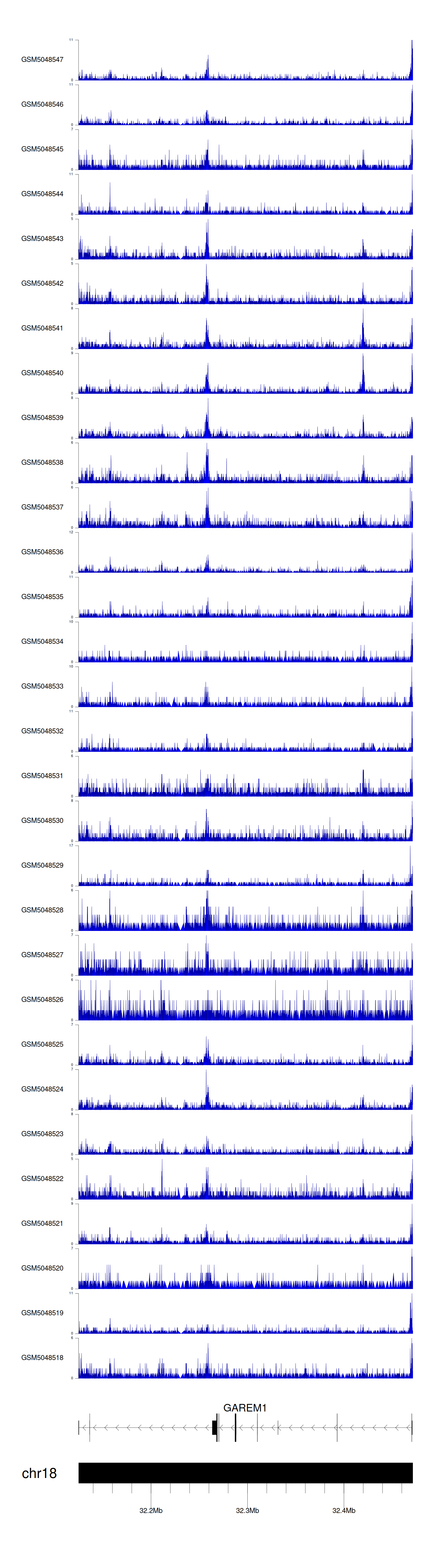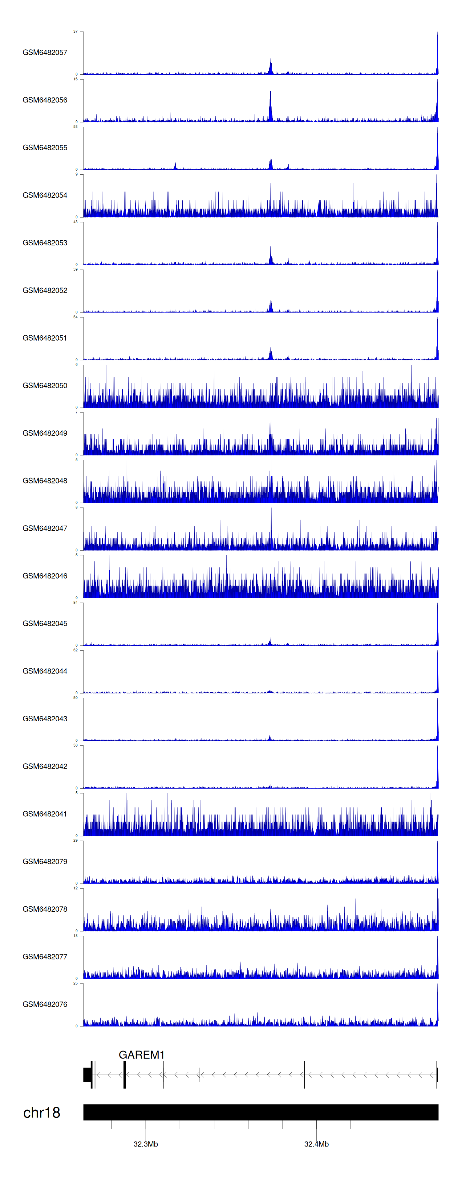 > Dataset: GSE165703 - GAREM1 peak across samples