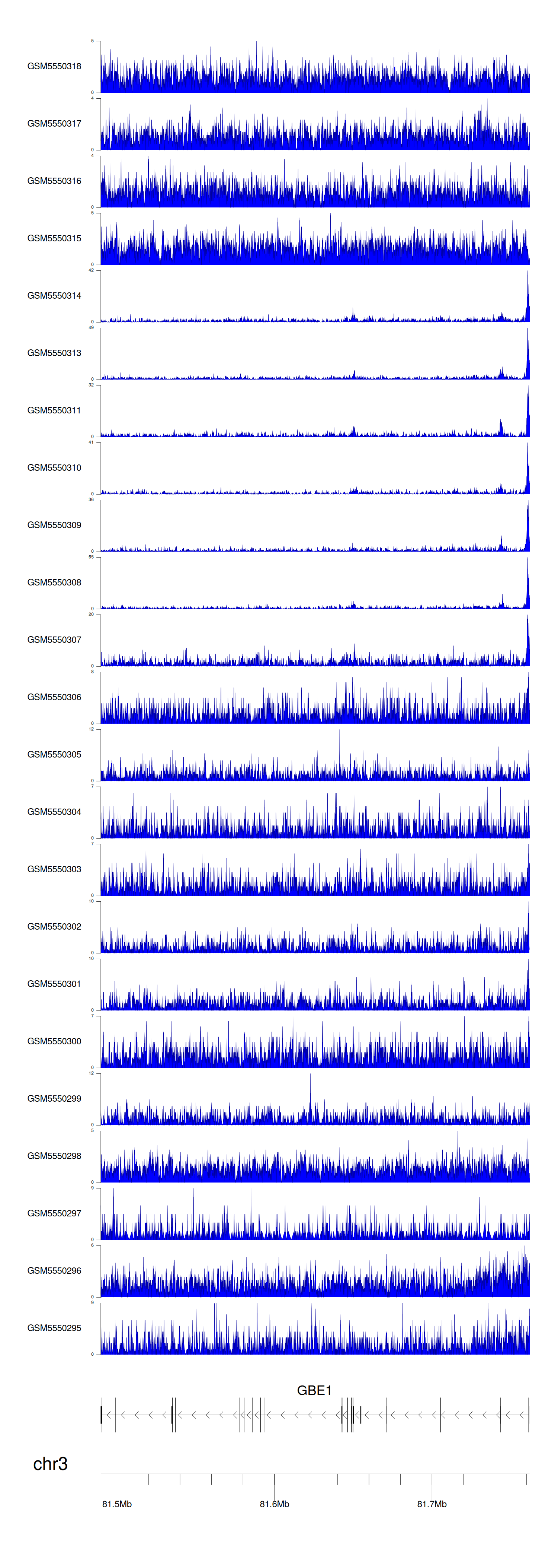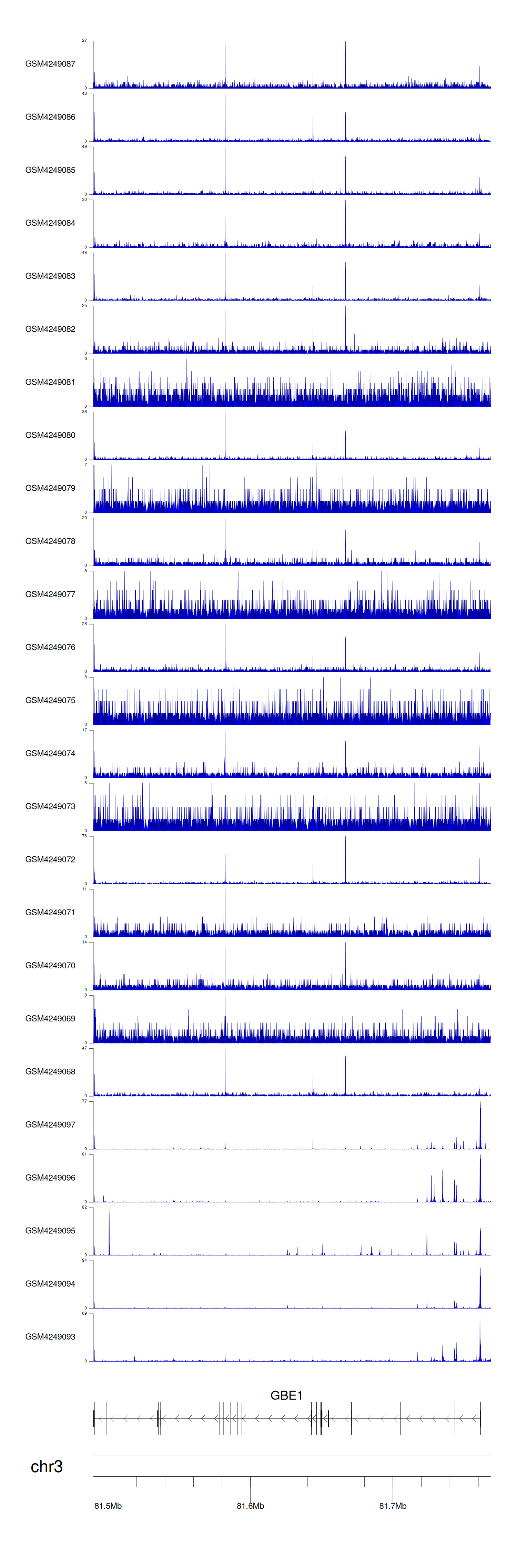 > Dataset: GSE143026 - GBE1 peak across samples