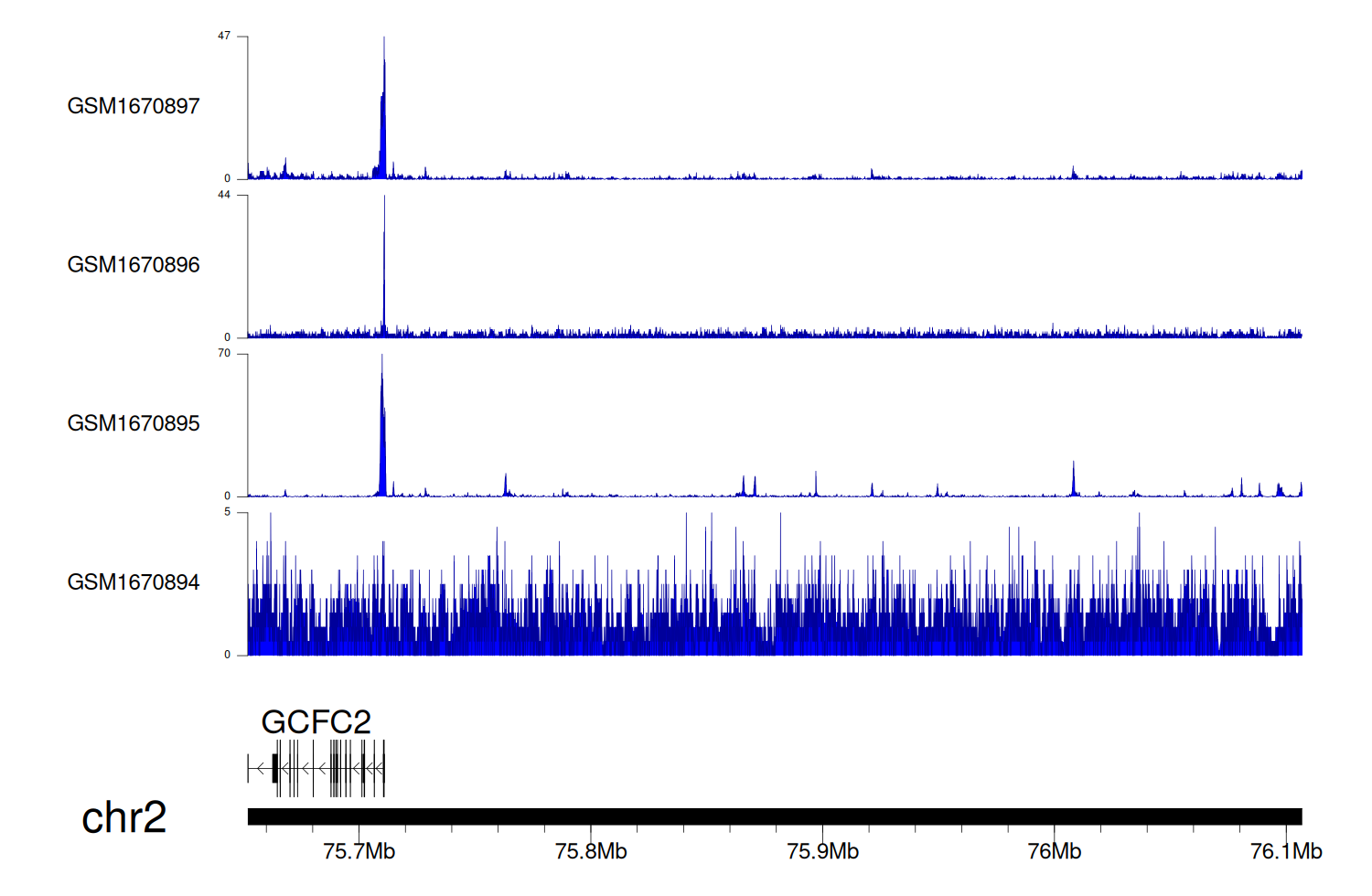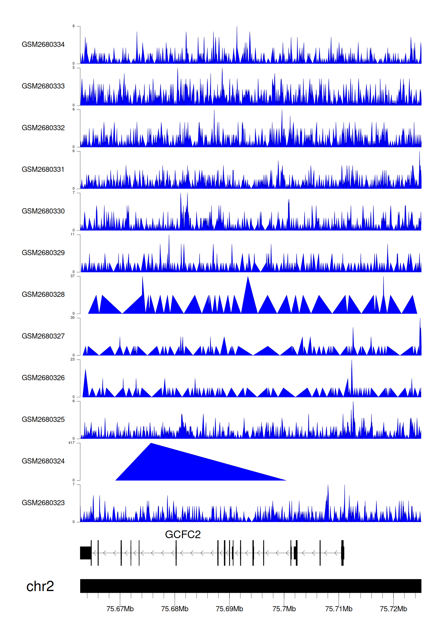 > Dataset: GSE68402 - GCFC2 peak across samples