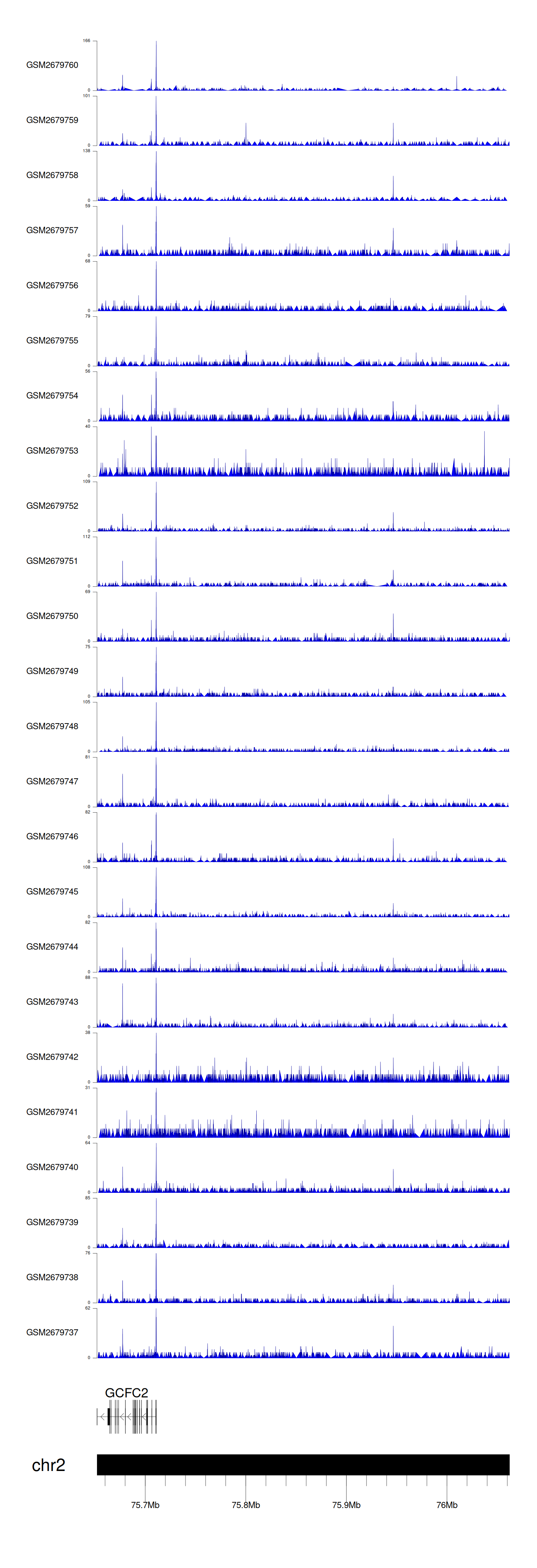 > Dataset: GSE100376 - GCFC2 peak across samples