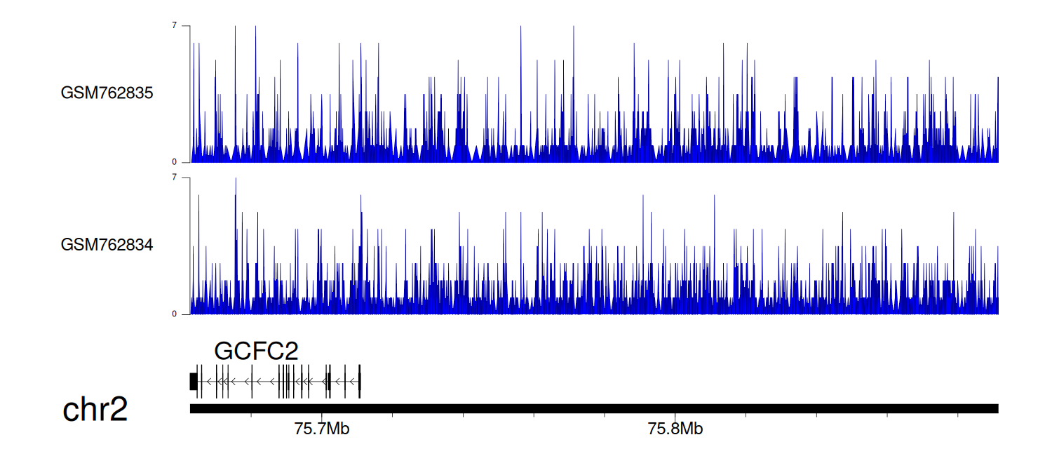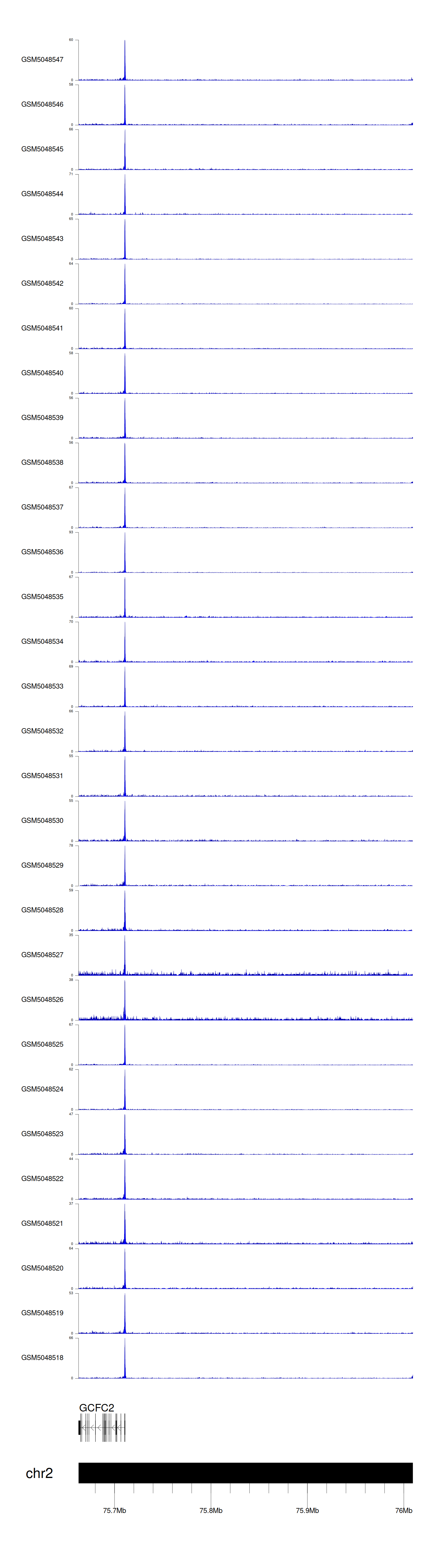 > Dataset: GSE30738 - GCFC2 peak across samples