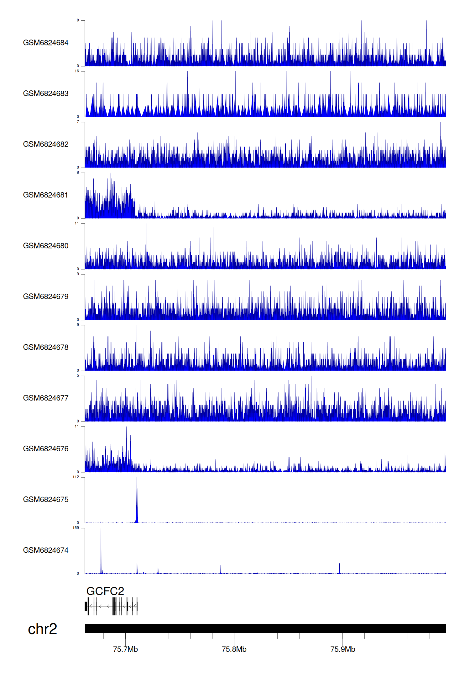 > Dataset: GSE144329 - GCFC2 peak across samples