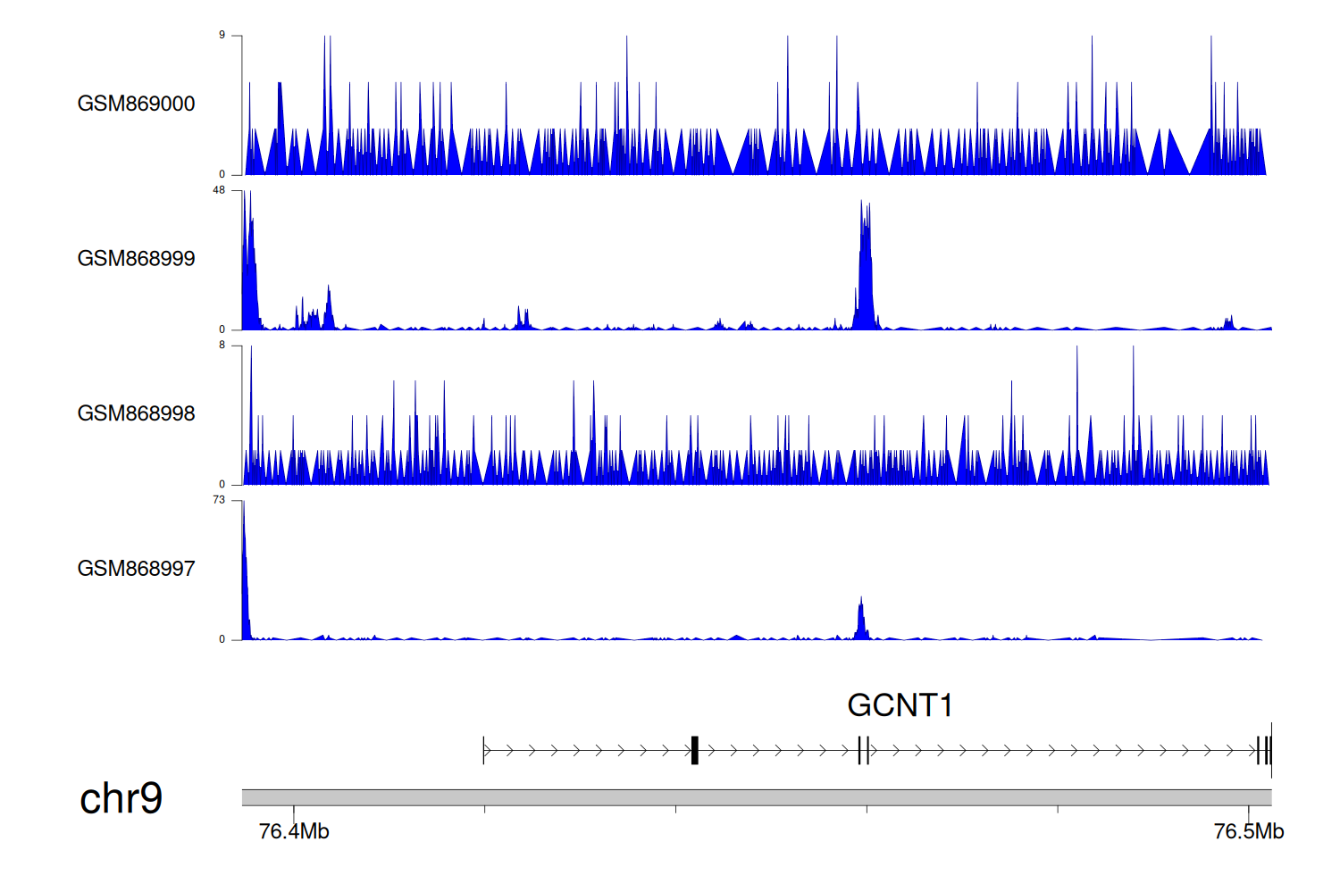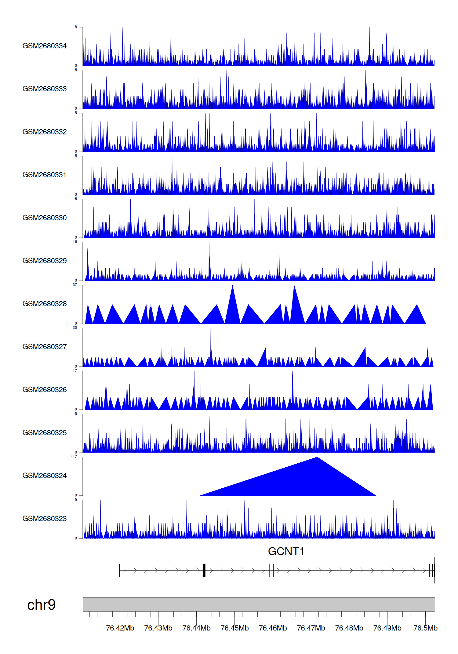 > Dataset: GSE68402 - GCNT1 peak across samples