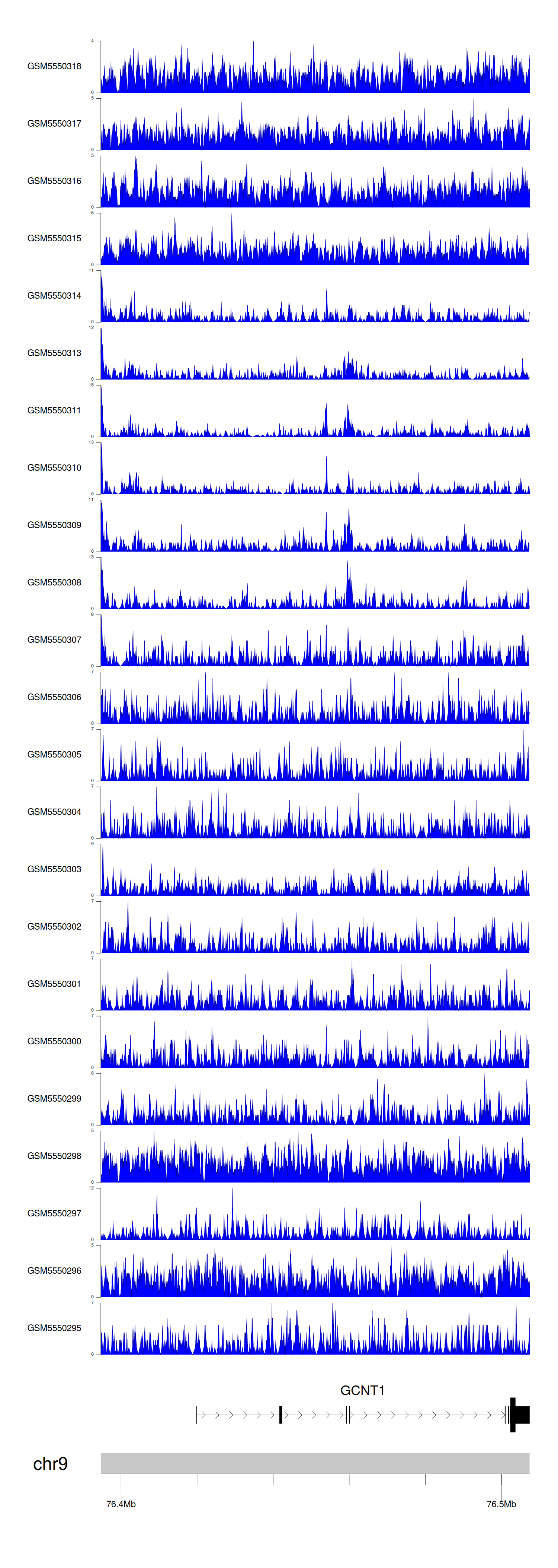 > Dataset: GSE143026 - GCNT1 peak across samples
