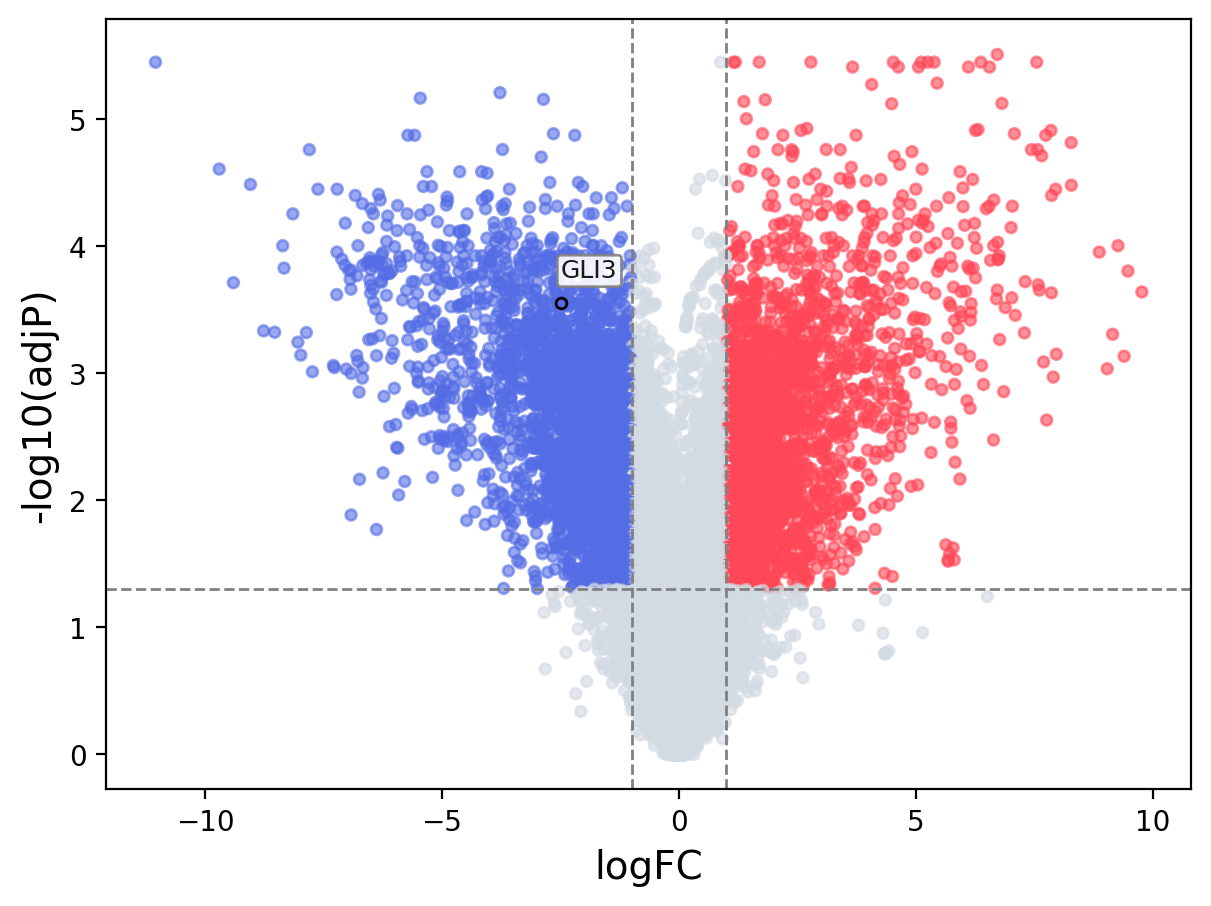 When the query gene is differentially changed in the dataset, a volcano/bar plot will be displayed.