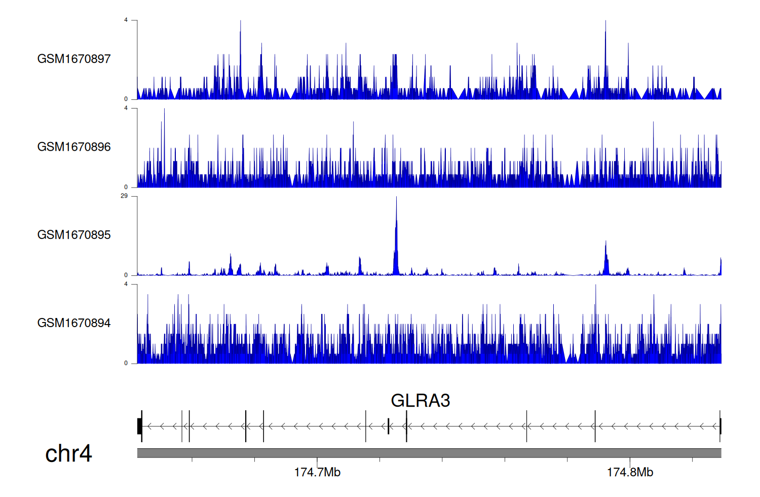 > Dataset: GSE100400 - GLRA3 peak across samples