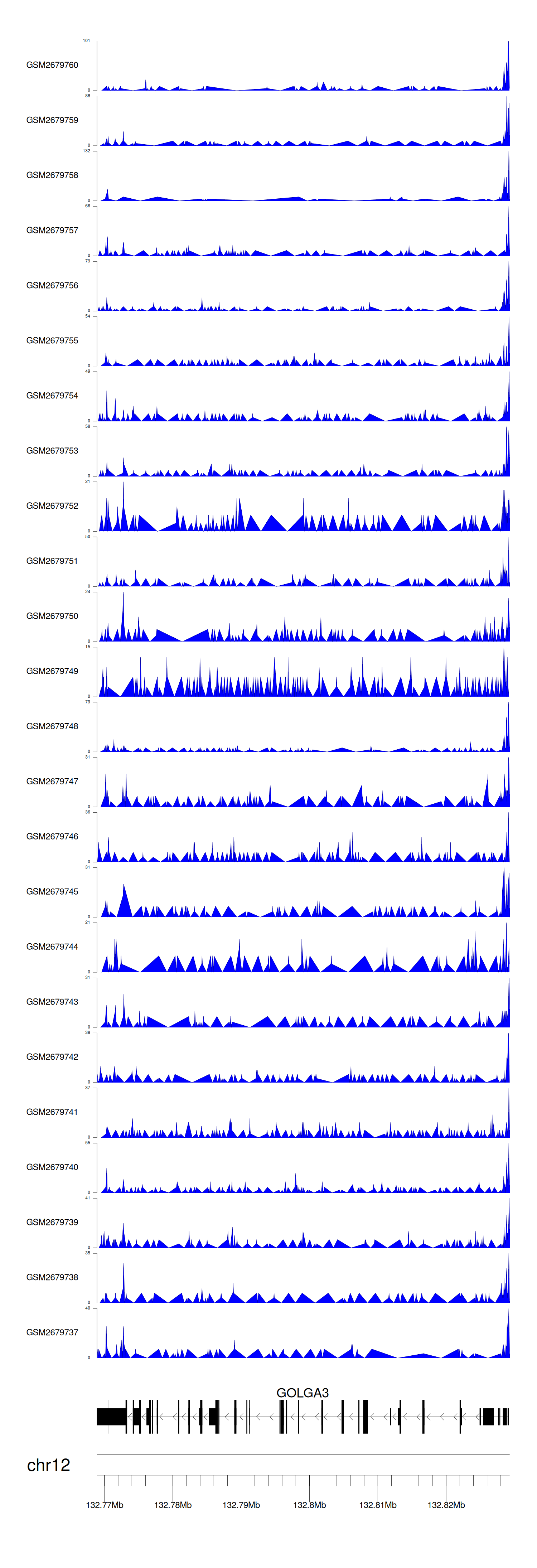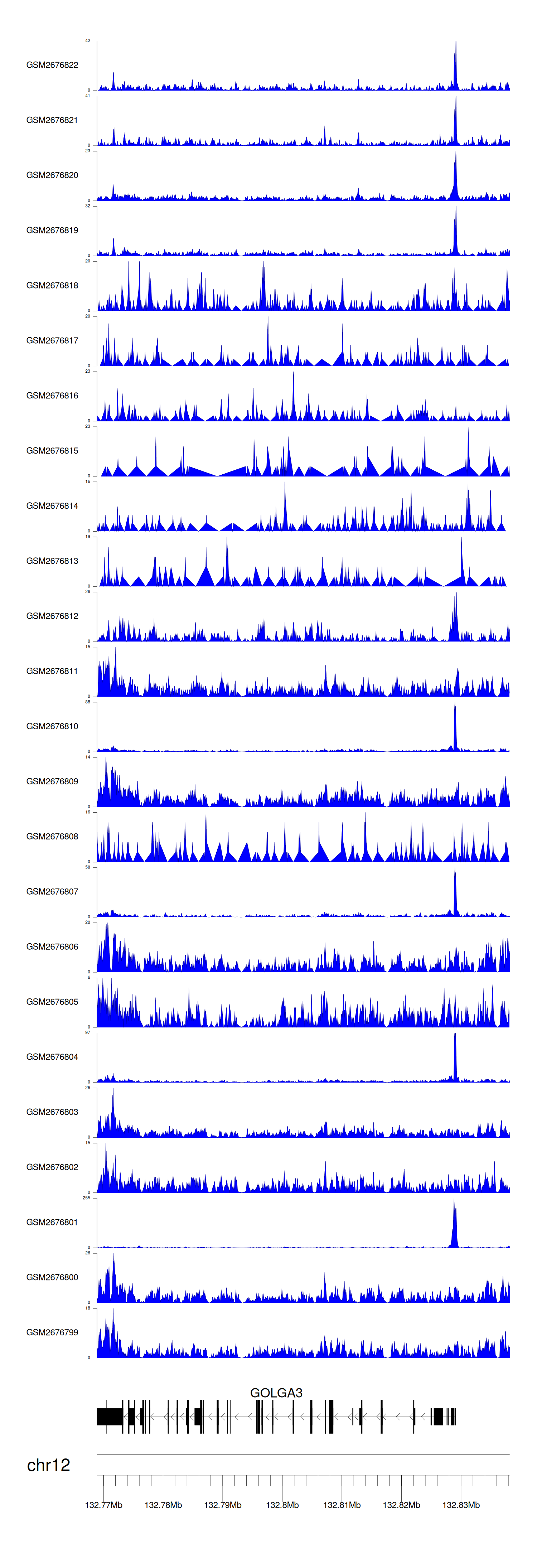 > Dataset: GSE100376 - GOLGA3 peak across samples