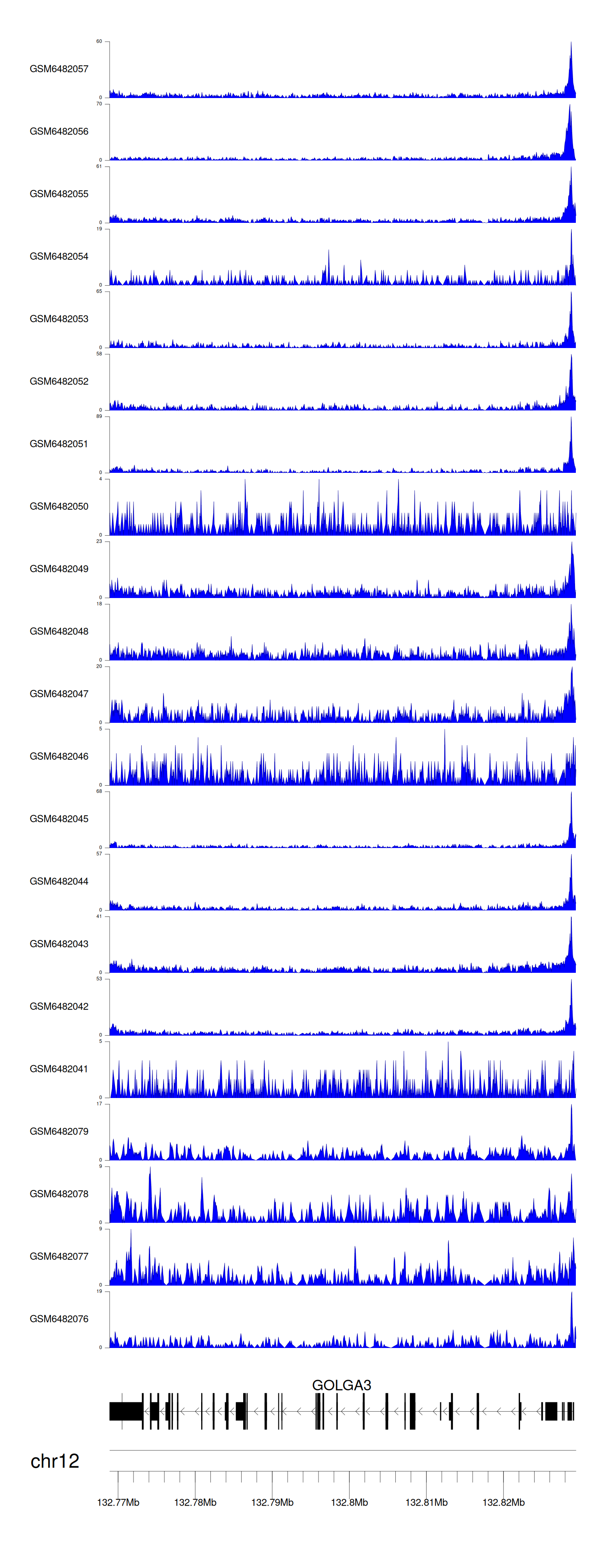 > Dataset: GSE165703 - GOLGA3 peak across samples